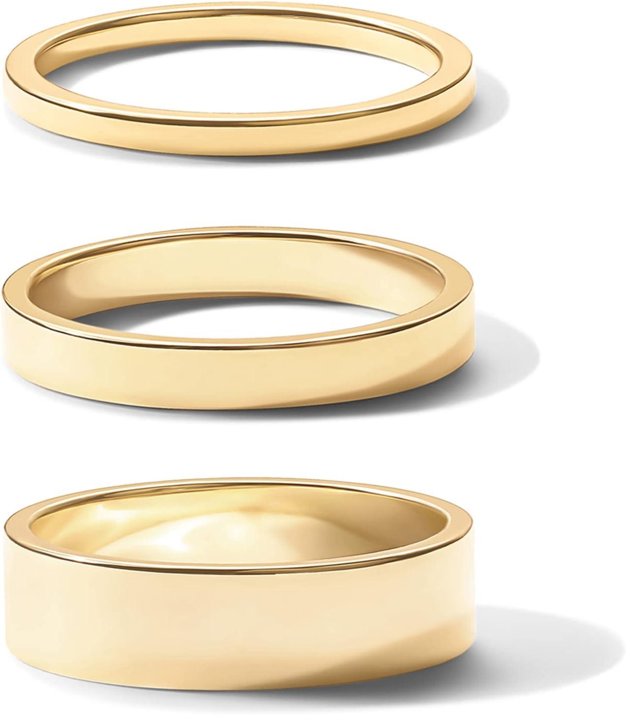 PAVOI 18K Gold Plated 3 Rings Set | Gold Stacking Rings for Women | Stacking Ring Set(Yellow Gold)