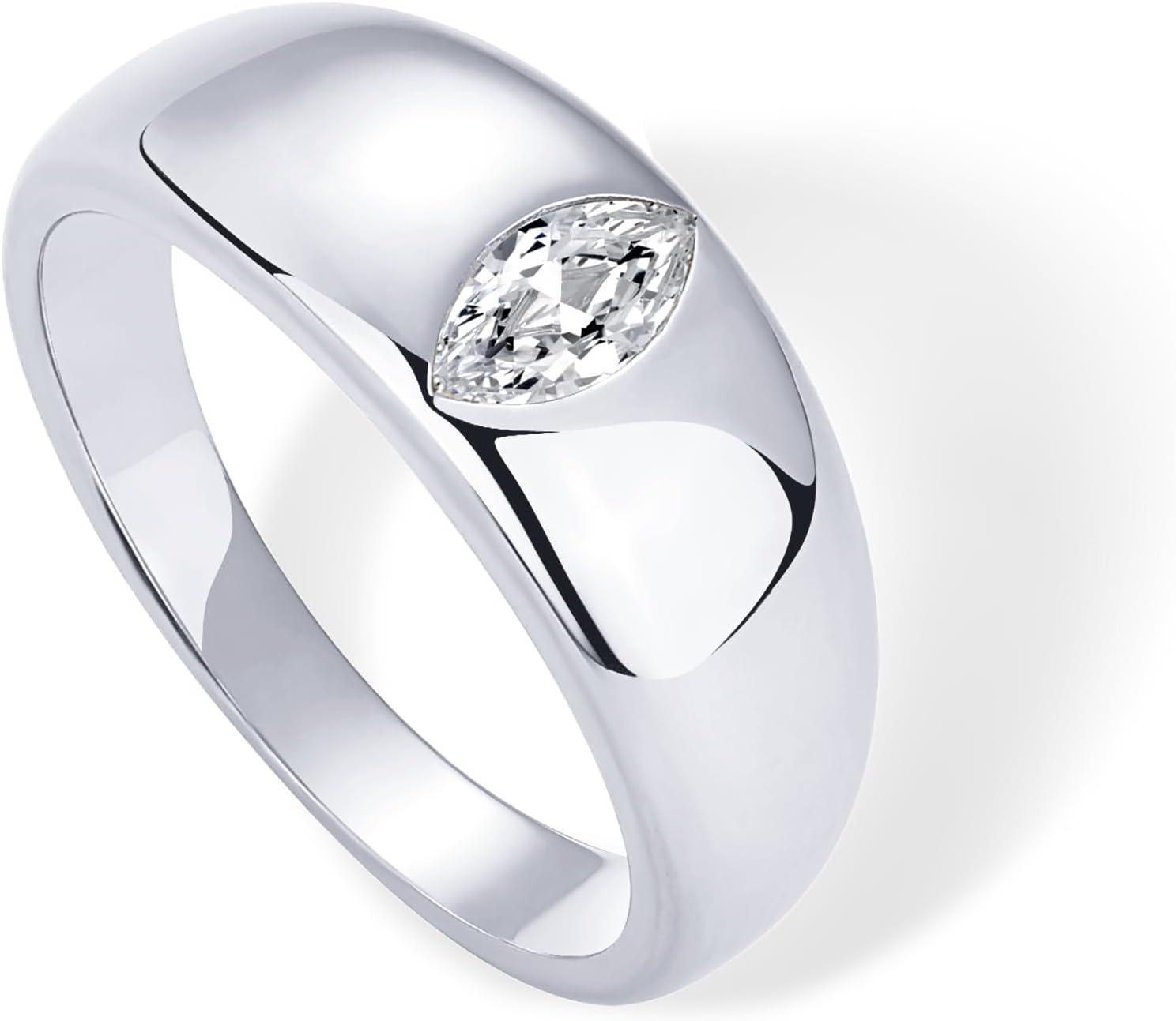 PAVOI 14K Gold Plated Chunky Dome Statement Ring for Women | Marquise Cubic Zirconia Dome Ring | Thick Stackable Bands(White Gold)
