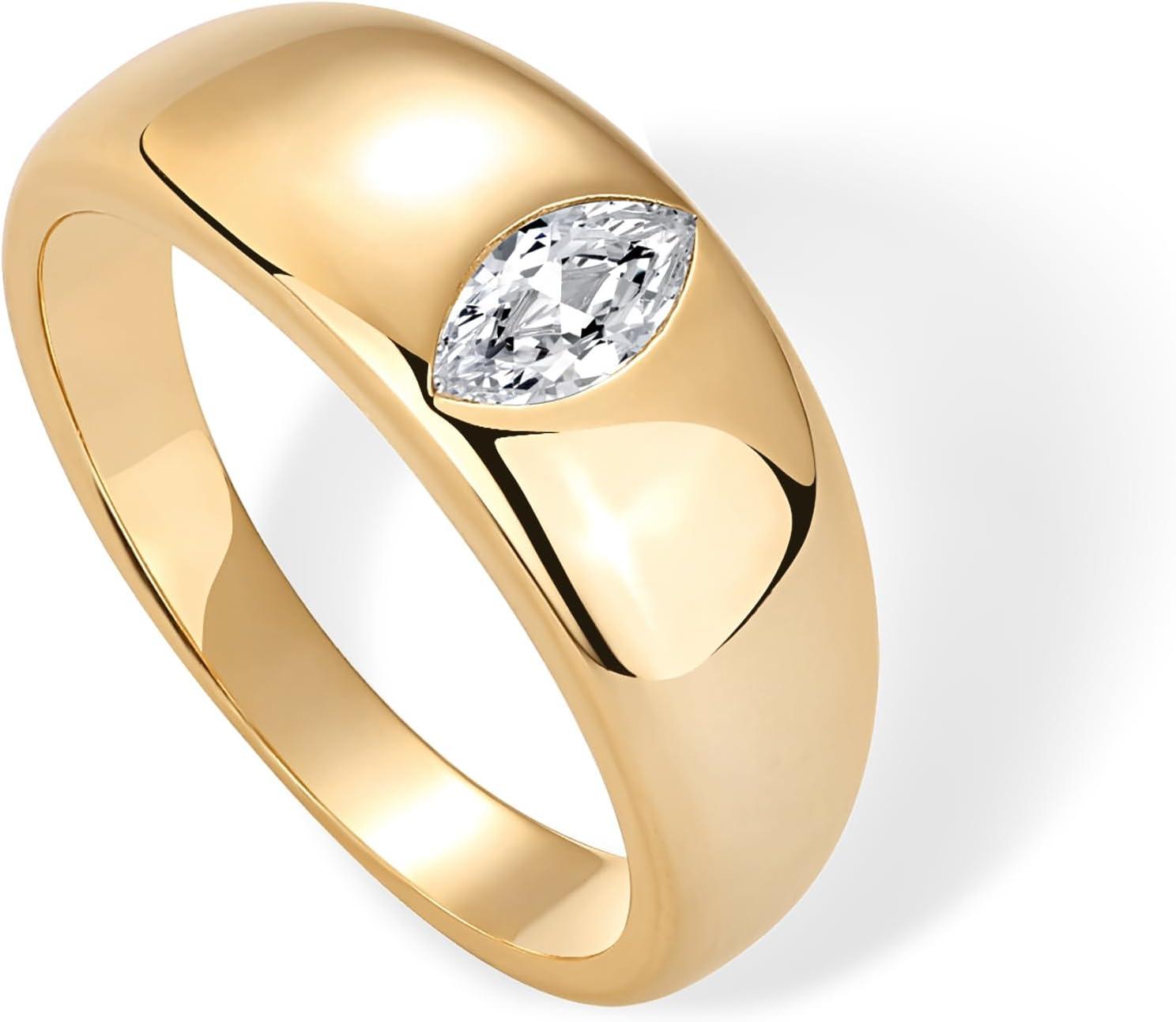 PAVOI 14K Gold Plated Chunky Dome Statement Ring for Women | Marquise Cubic Zirconia Dome Ring | Thick Stackable Bands(Yellow Gold)