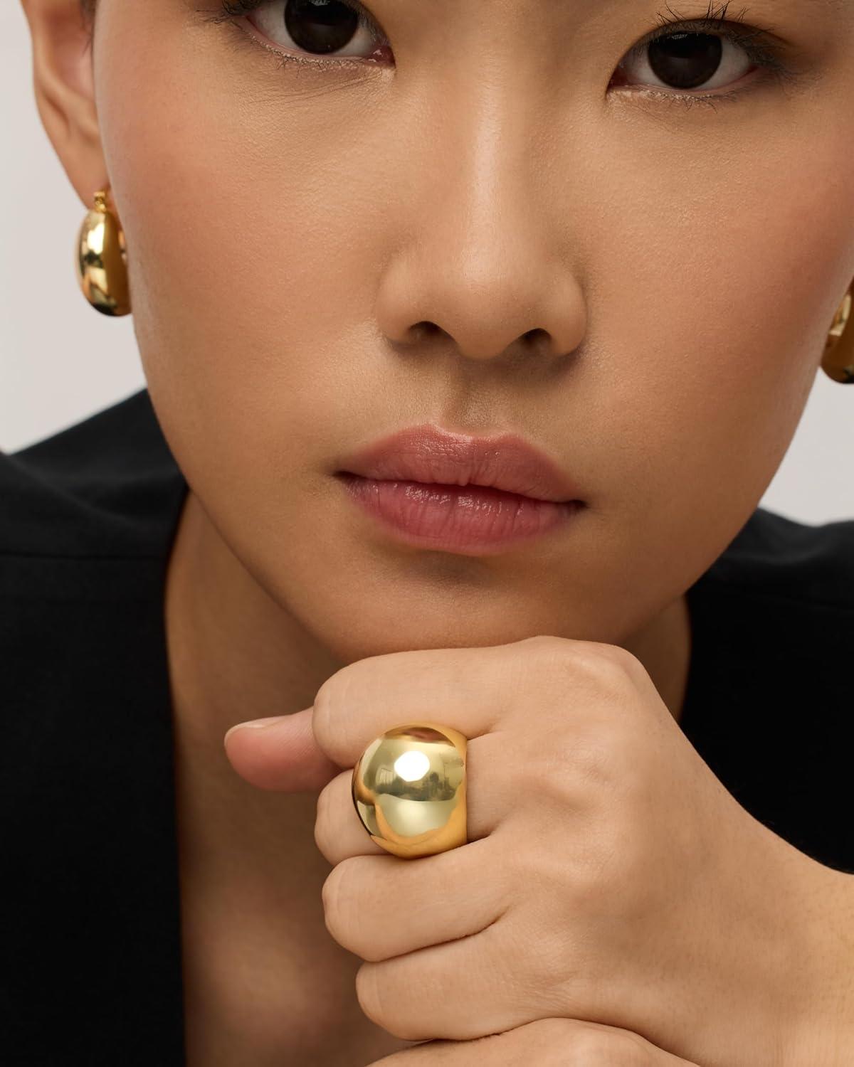 PAVOI 14K Gold Plated Chunky Domed Statement Ring for Women | Lightweight Trendy Sphere Rings | Statement Jewelry(Yellow Gold)
