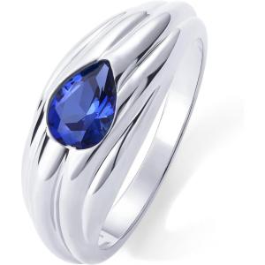 PAVOI 14K Gold Plated Chunky Colored Gemstones Statement Ring for Women | Blue Pink Green Pear Cubic Zirconia Stackable Wave Texture Bands(White Gold)