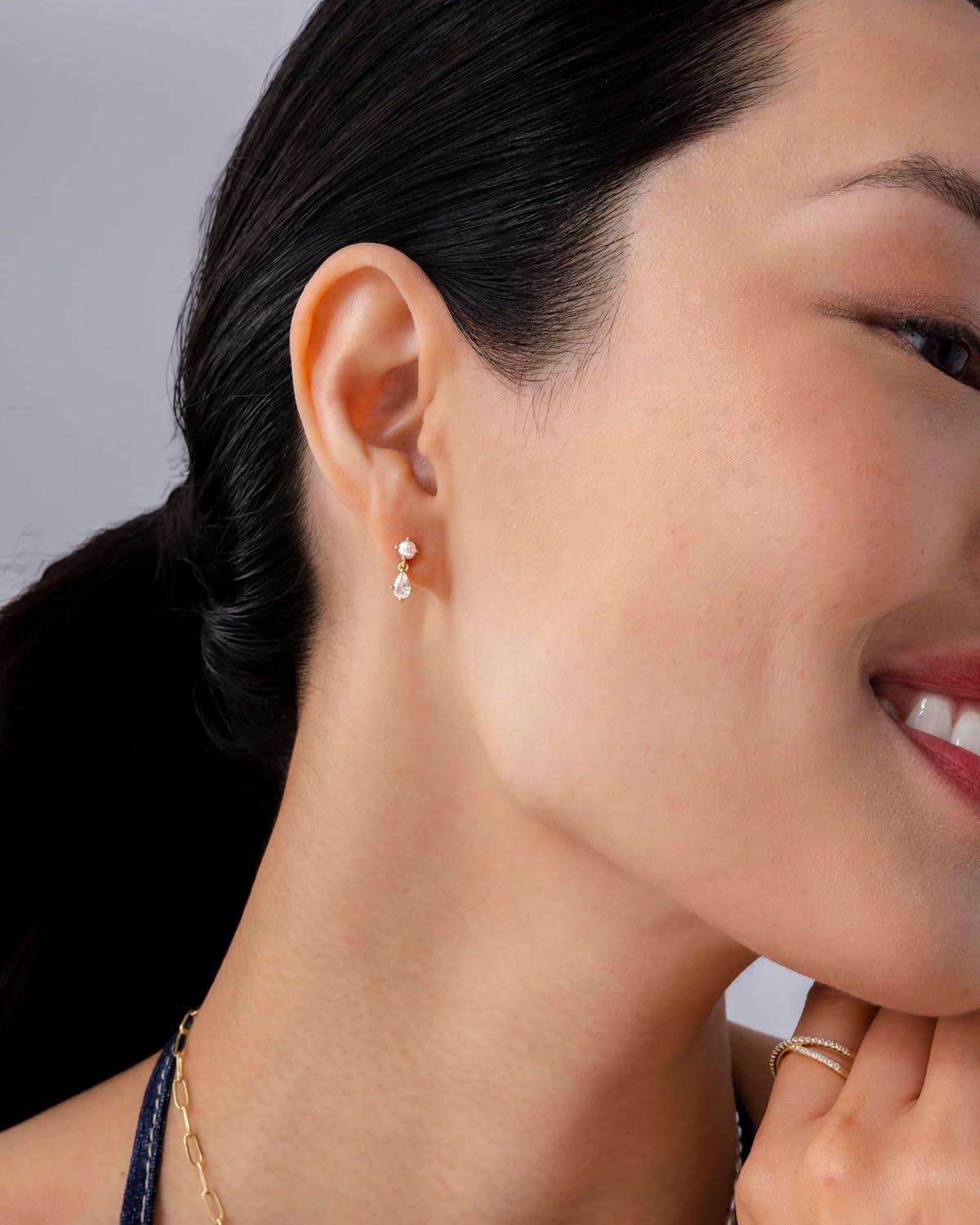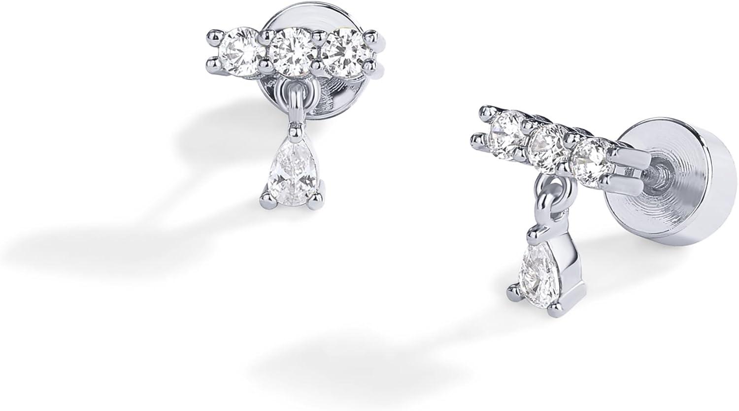 PAVOI 14K Gold Plated Sentimental Dangle Flat Back Earrings for Women | Helix and Cartilage Pearl Cluster Triangle Lotus Pear Marquise Cubic Zirconia Screw Back Earring Pair(Pear)
