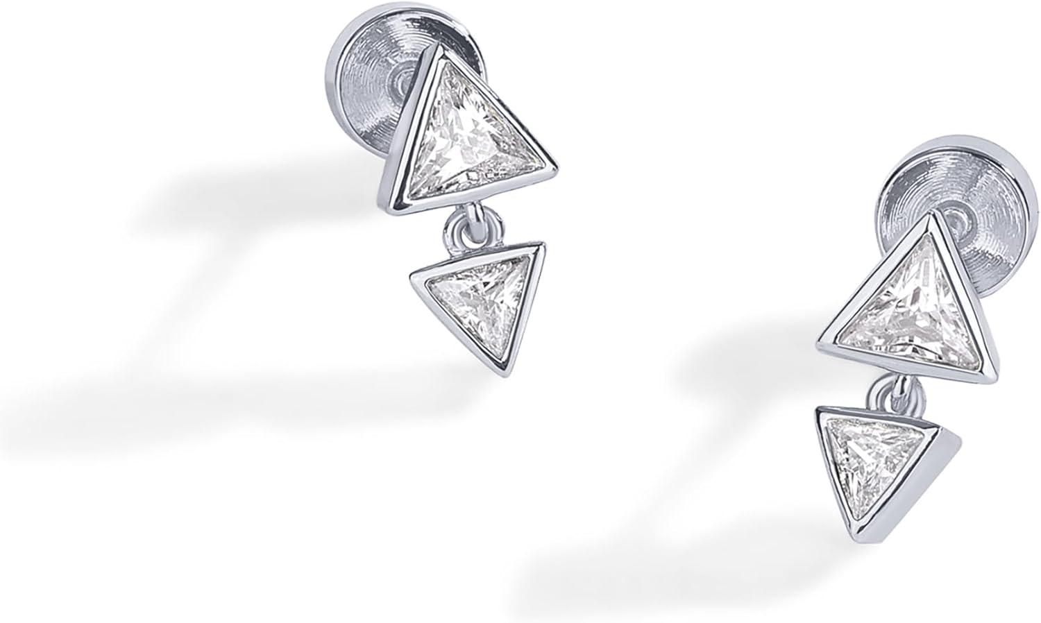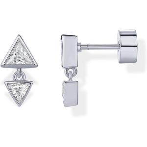 PAVOI 14K Gold Plated Sentimental Dangle Flat Back Earrings for Women | Helix and Cartilage Pearl Cluster Triangle Lotus Pear Marquise Cubic Zirconia Screw Back Earring Pair(Triangle)