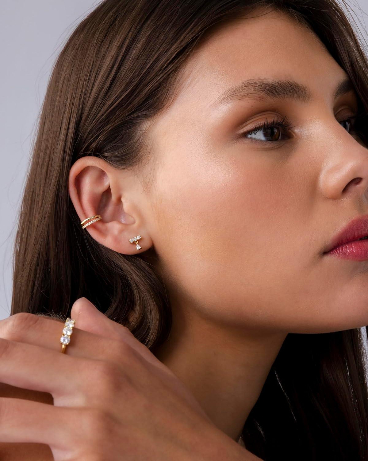 PAVOI 14K Gold Plated 925 Sterling Silver Posts Mini Stud Flat Back Earrings for Women | Helix Cartilage Piercing Jewelry | Dainty Pearl Star Cluster Cubic Zirconia Lotus Climber Screw Backs(Climber Stud)