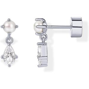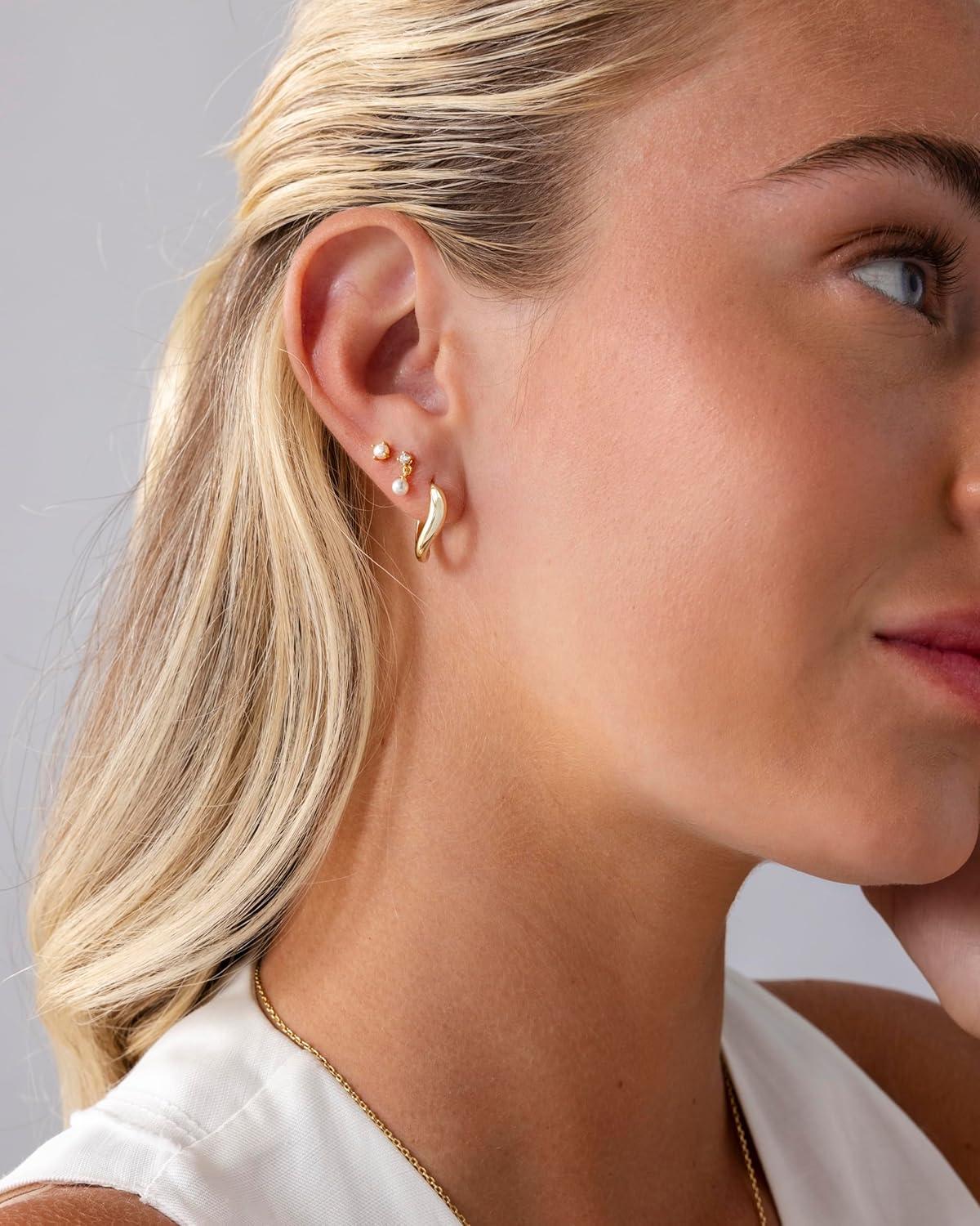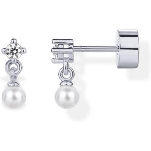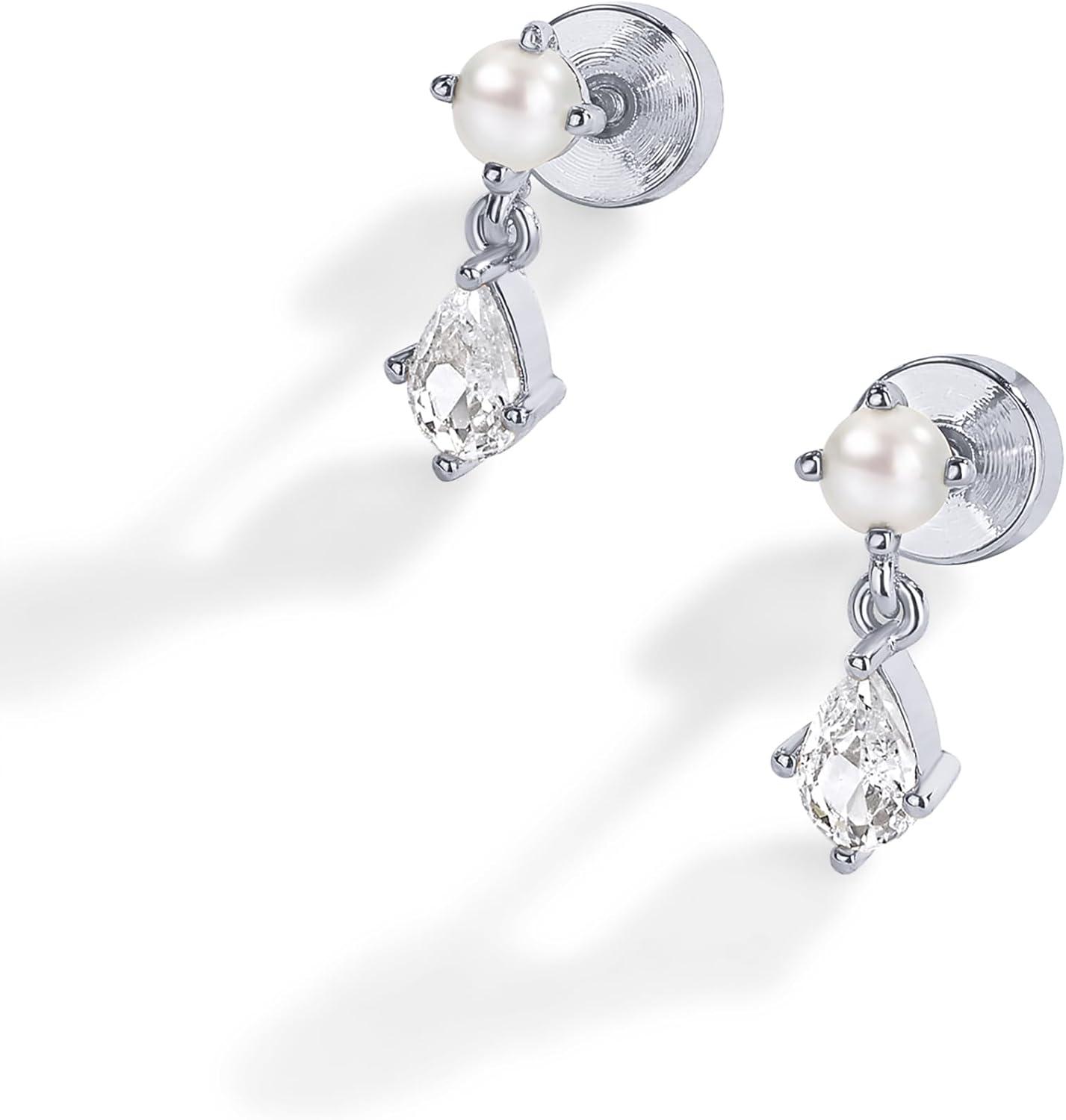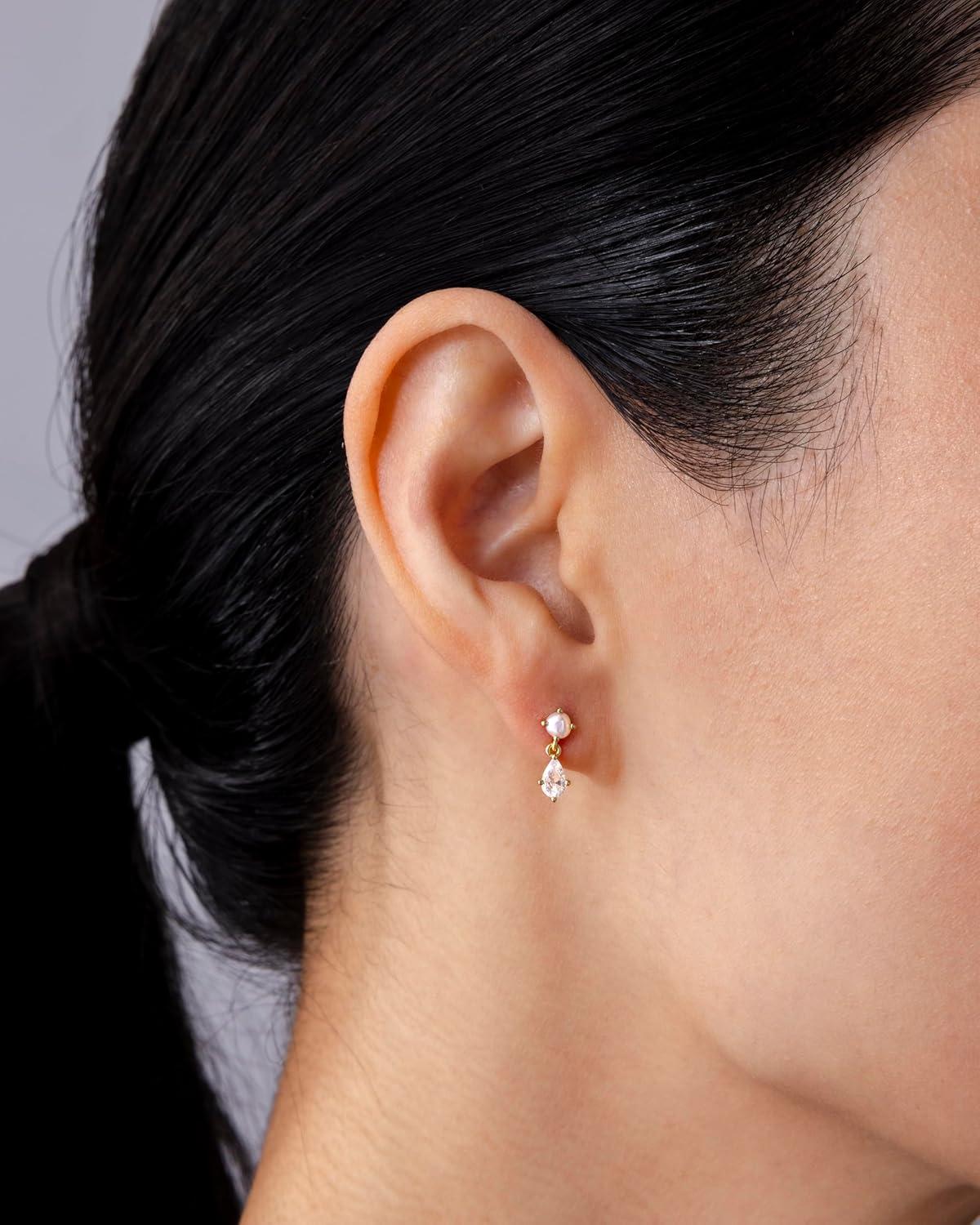 PAVOI 14K Gold Plated Sentimental Dangle Flat Back Earrings for Women | Helix and Cartilage Pearl Cluster Triangle Lotus Pear Marquise Cubic Zirconia Screw Back Earring Pair(Pearl & CZ)