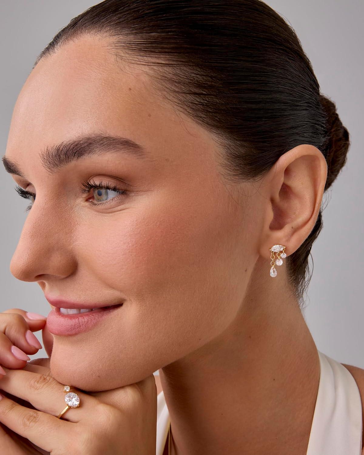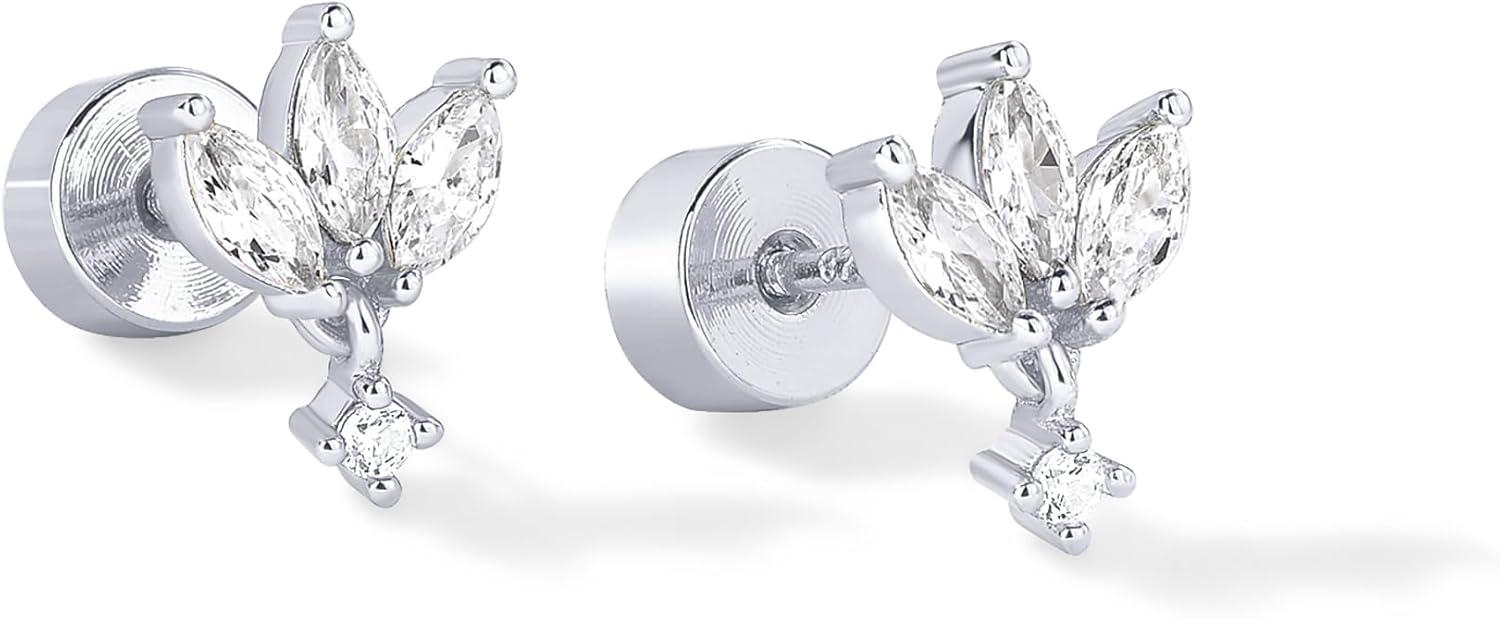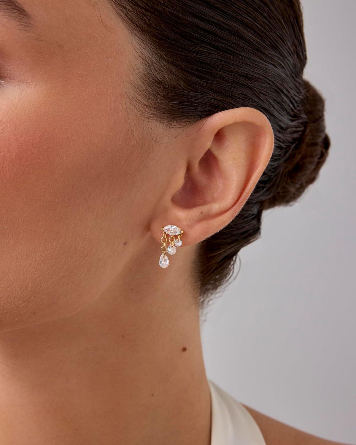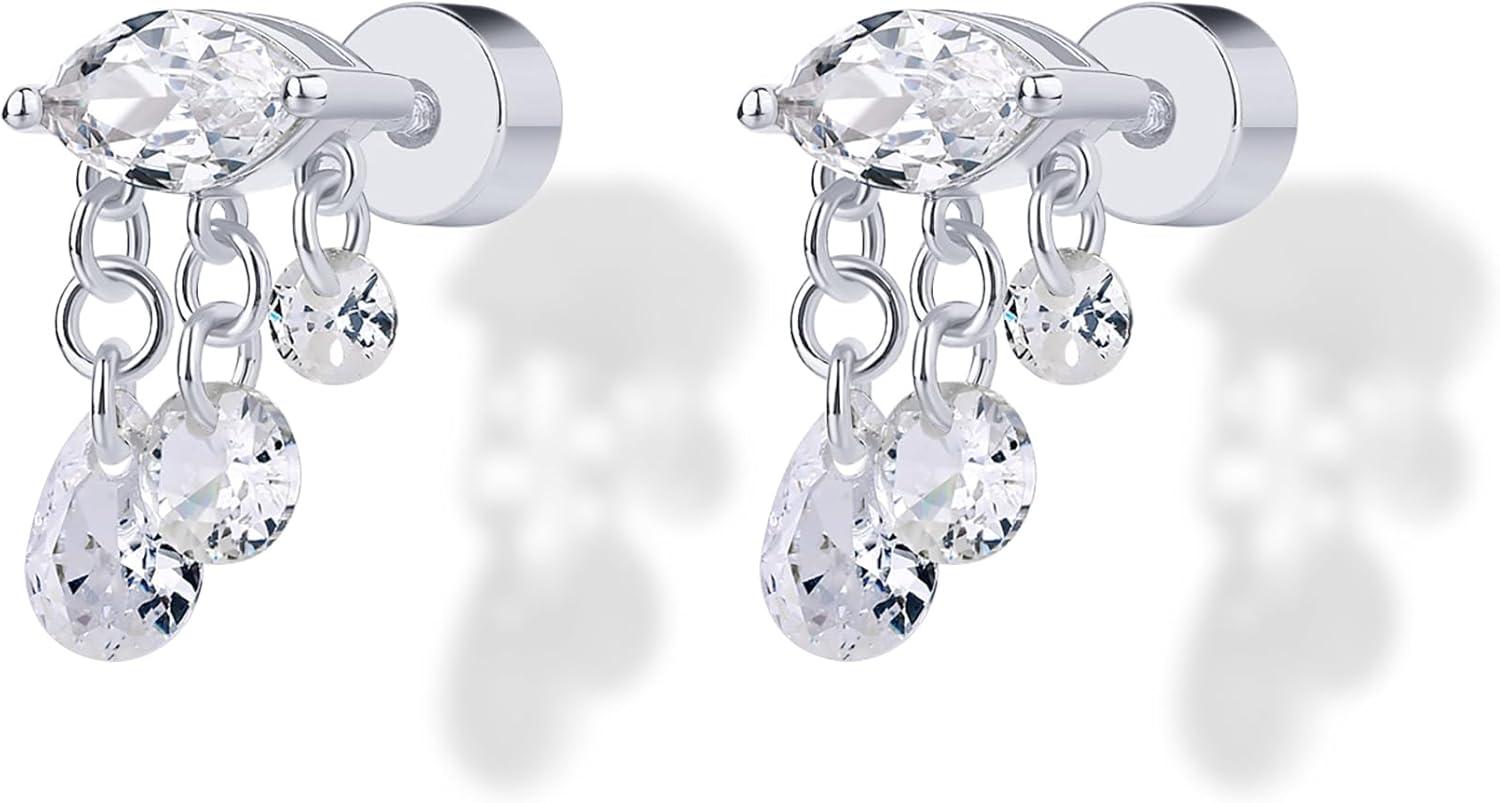 PAVOI 14K Gold Plated Sentimental Dangle Flat Back Earrings for Women | Helix and Cartilage Pearl Cluster Triangle Lotus Pear Marquise Cubic Zirconia Screw Back Earring Pair(Marquise)