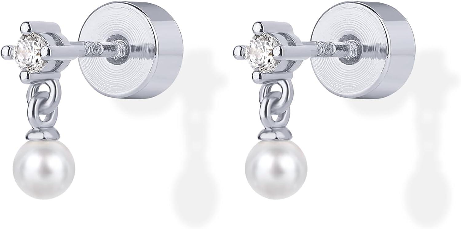 PAVOI 14K Gold Plated 925 Sterling Silver Posts Mini Stud Flat Back Earrings for Women | Helix Cartilage Piercing Jewelry | Dainty Pearl Star Cluster Cubic Zirconia Lotus Climber Screw Backs(Pearl Stud)