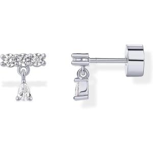 PAVOI 14K Gold Plated S925 Sterling Silver Post Lightweight Drop Dangle Huggie Hoop Earrings for Women | Star, Lock, Pearl, Cross, Lightening, Coin | Dainty Earrings(White Gold)