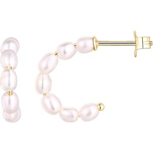 PAVOI 14K Gold-Plated Classic Pearl Hoop Earrings for Women | Freshwater Pearl Earring Pair(Round Pearls)