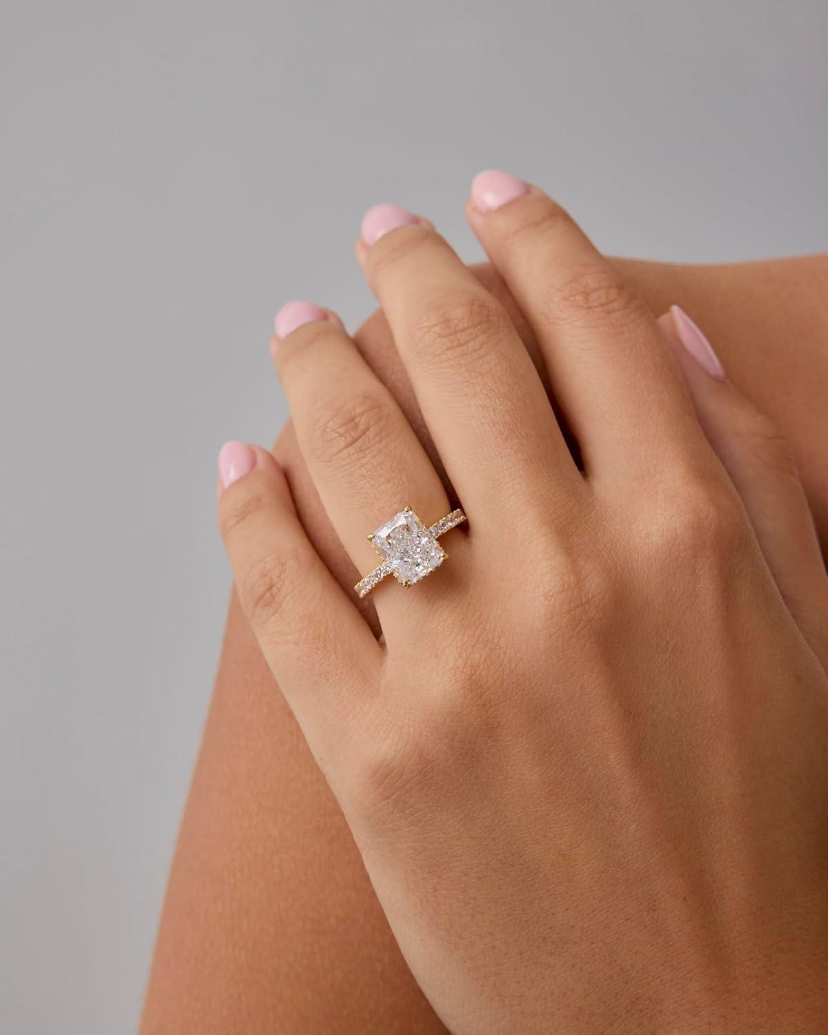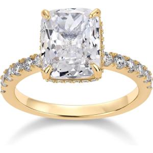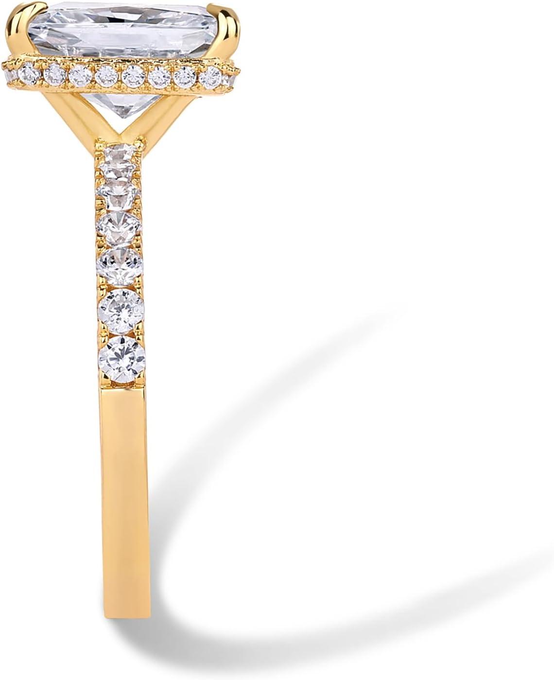 PAVOI 14K Gold Plated 3.5CT Square Radiant Cubic Zirconia Engagement and Promise Ring for Women – Hidden Halo Ring(Yellow Gold)