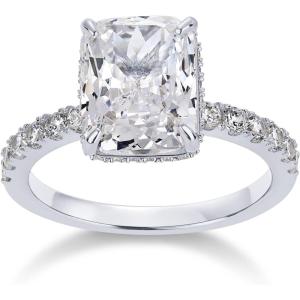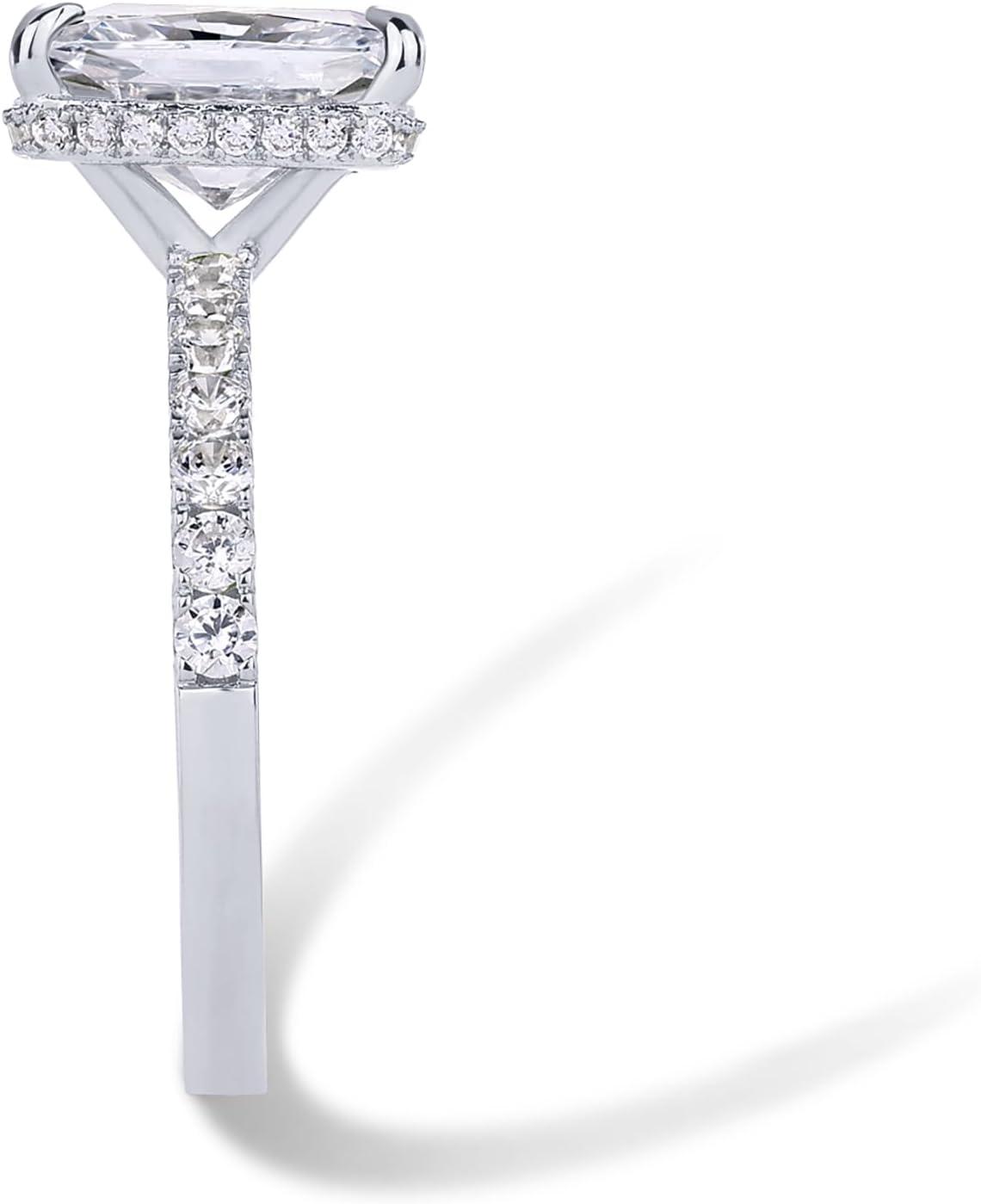 PAVOI 14K Gold Plated 3.5CT Square Radiant Cubic Zirconia Engagement and Promise Ring for Women – Hidden Halo Ring(White Gold)