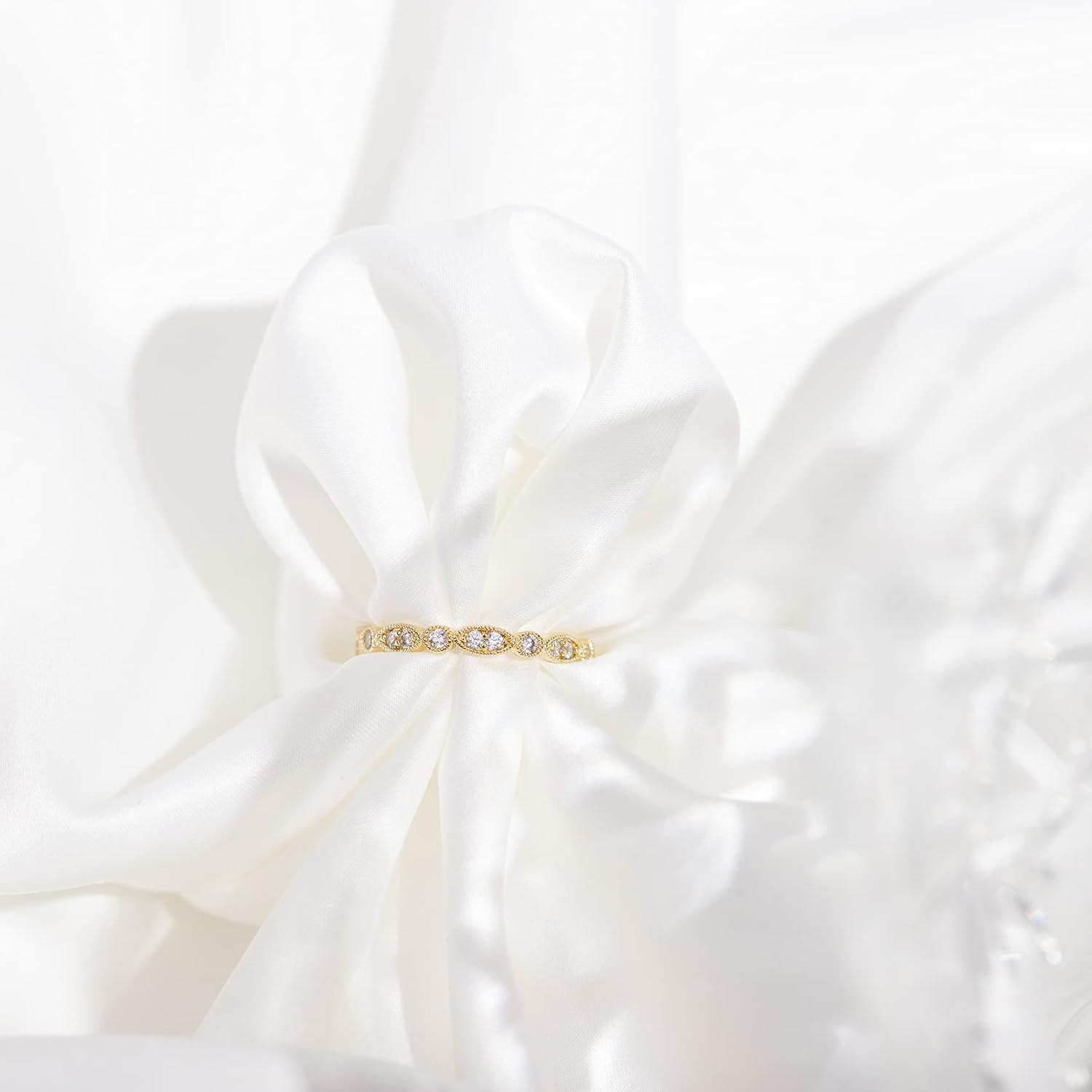 PAVOI 14K Gold Plated Cubic Zirconia Band | Round Milgrain Eternity Bands | Gold Rings for Women(Yellow Gold)