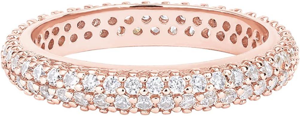 PAVOI 14K Gold Plated Cubic Zirconia Double Row Eternity Band for Women(Rose Gold)