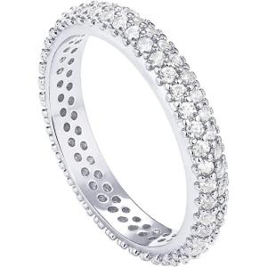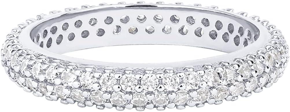 PAVOI 14K Gold Plated Cubic Zirconia Double Row Eternity Band for Women(White Gold)