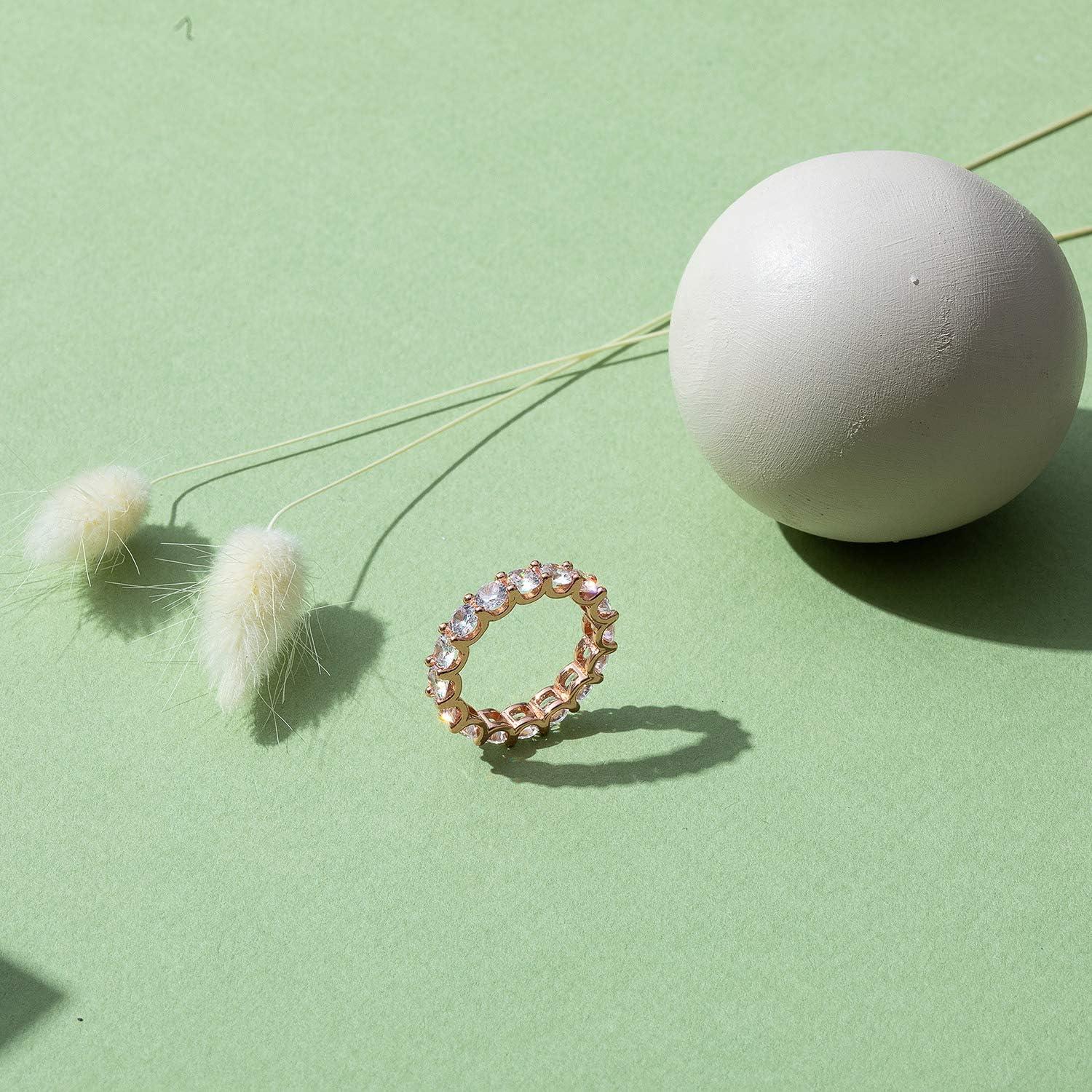 PAVOI 14K Gold Plated Cubic Zirconia Band | Round Milgrain Eternity Bands | Gold Rings for Women(Rose Gold)