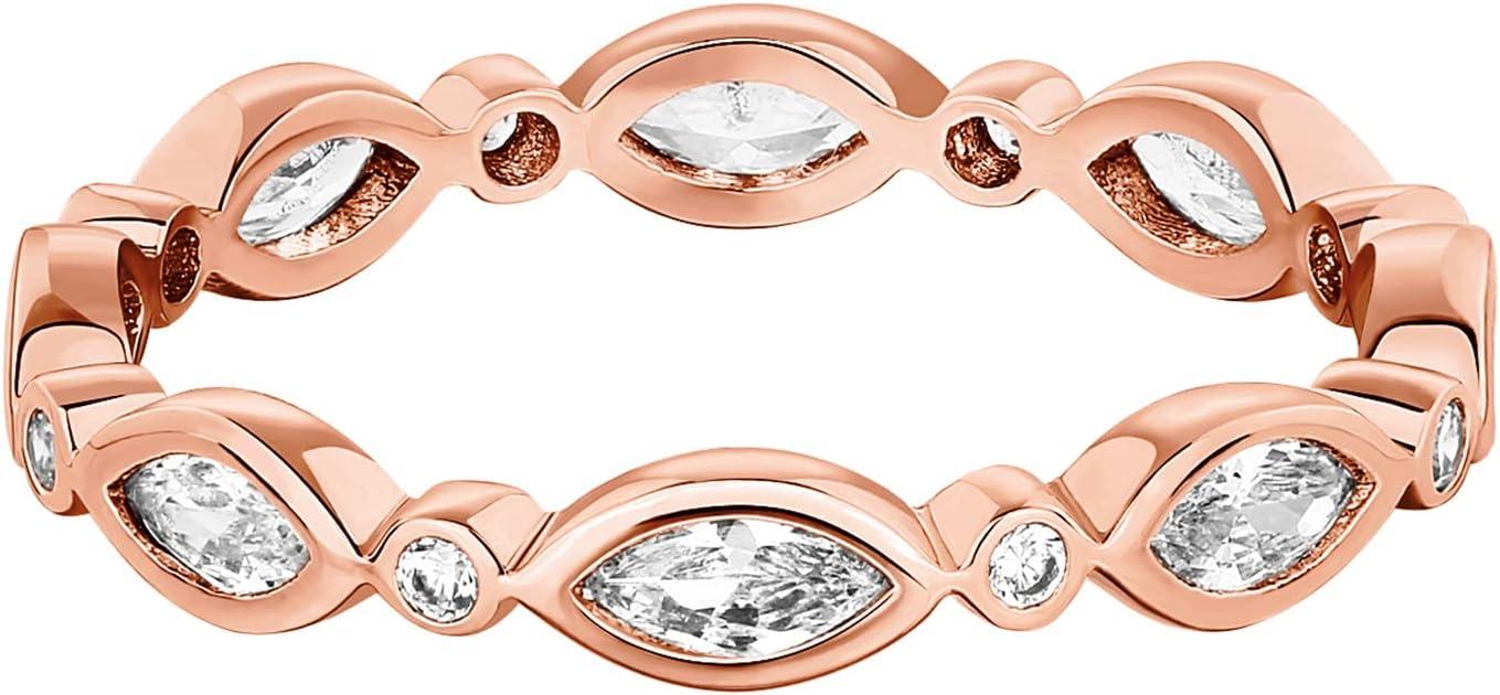 PAVOI 14K Gold Plated Cubic Zirconia Stackable Ring | Marquise Eternity Band For Women | Plated Gold Stacking Ring(Rose Gold)