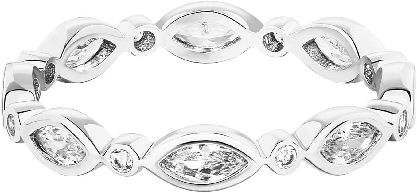 PAVOI 14K Gold Plated Cubic Zirconia Stackable Ring | Marquise Eternity Band For Women | Plated Gold Stacking Ring(White Gold)