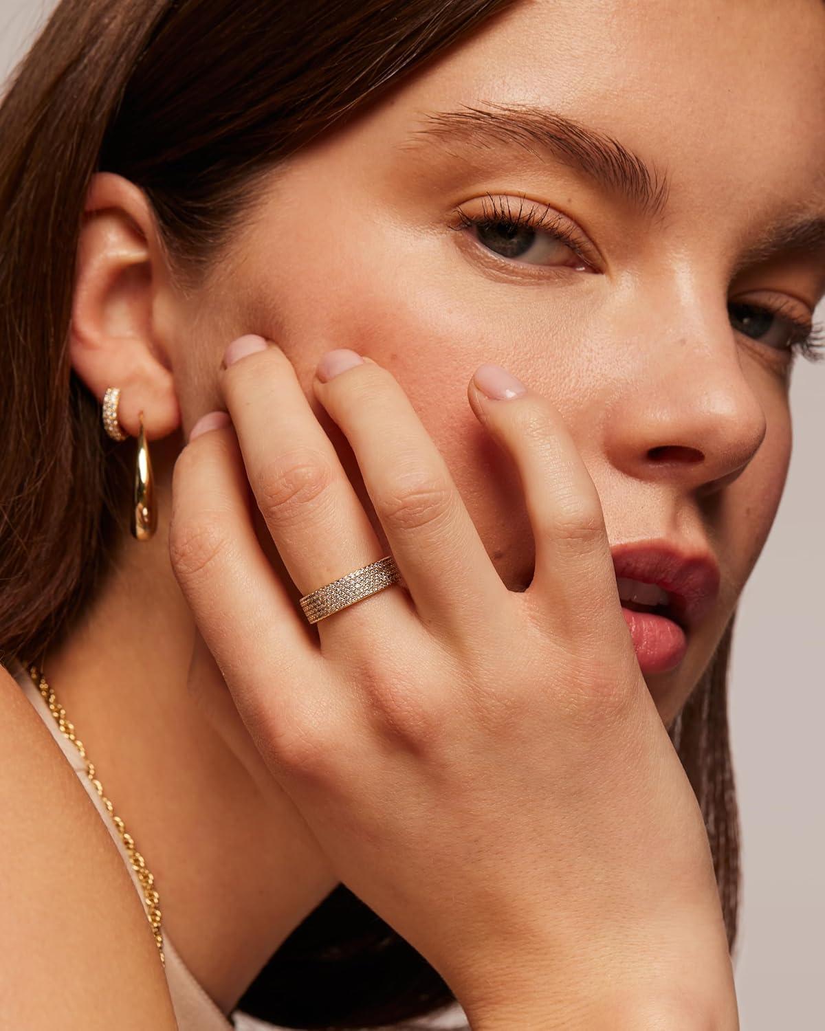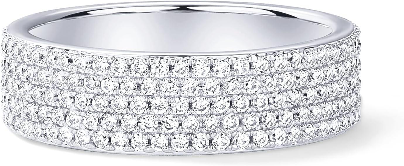PAVOI 14K Gold Plated Cubic Zirconia Wide Eternity Statement Rings | CZ Stackable Wedding Band for Women(White Gold)