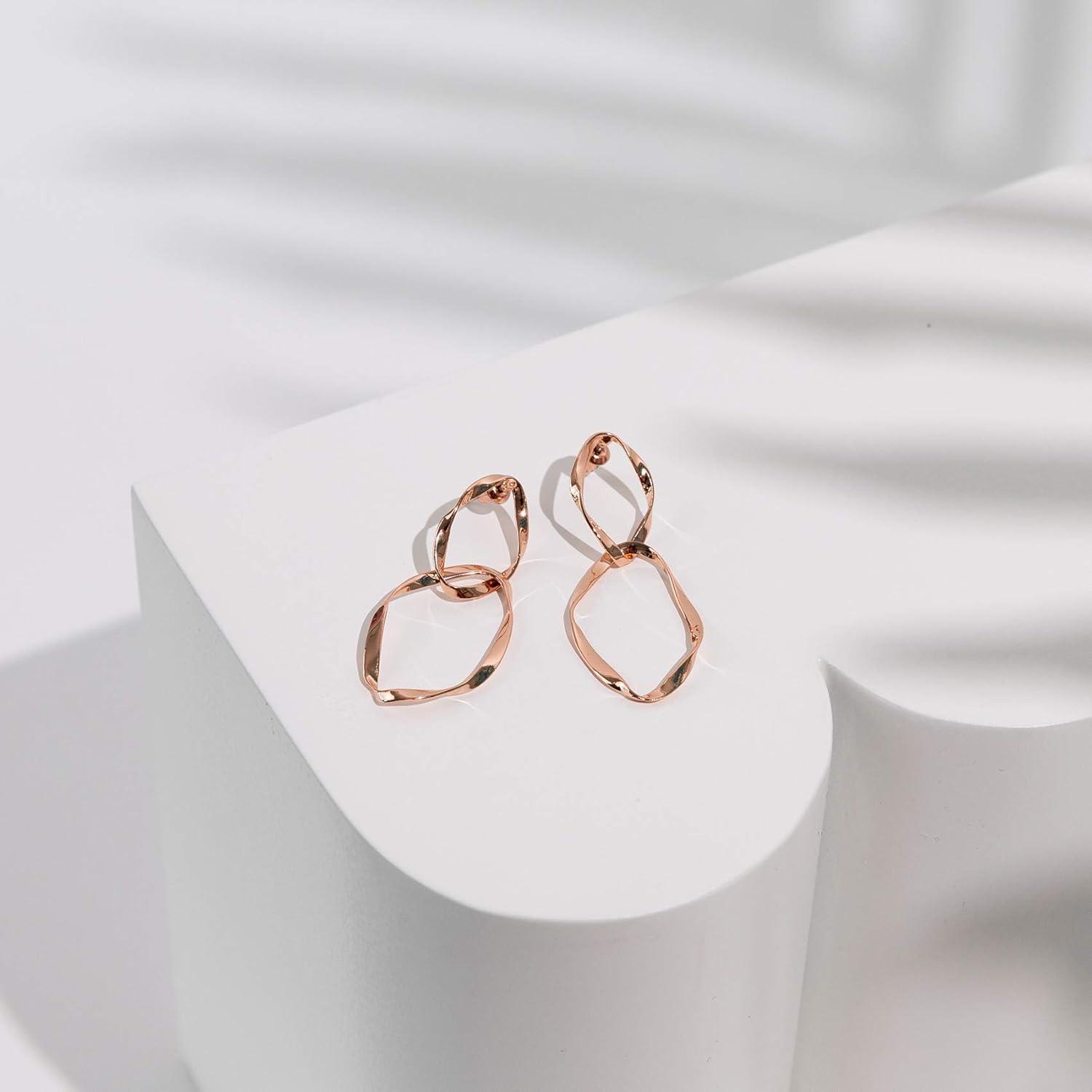 PAVOI 14K Gold Plated Dangle Earrings for Women | Infinity Cute Hanging Hoop Earrings(Rose Gold)