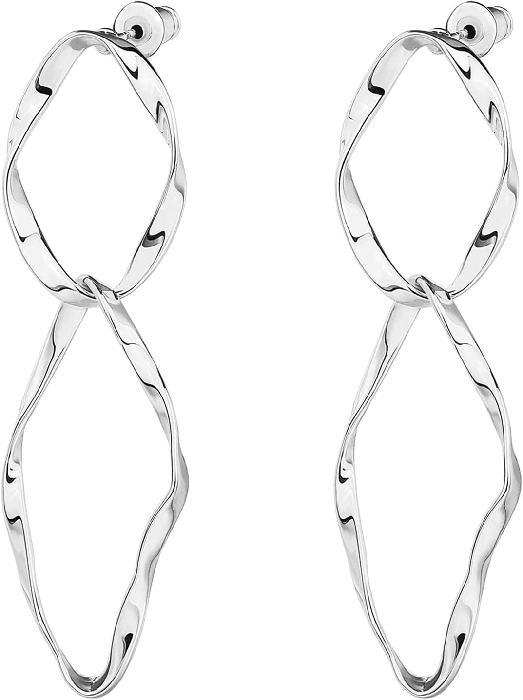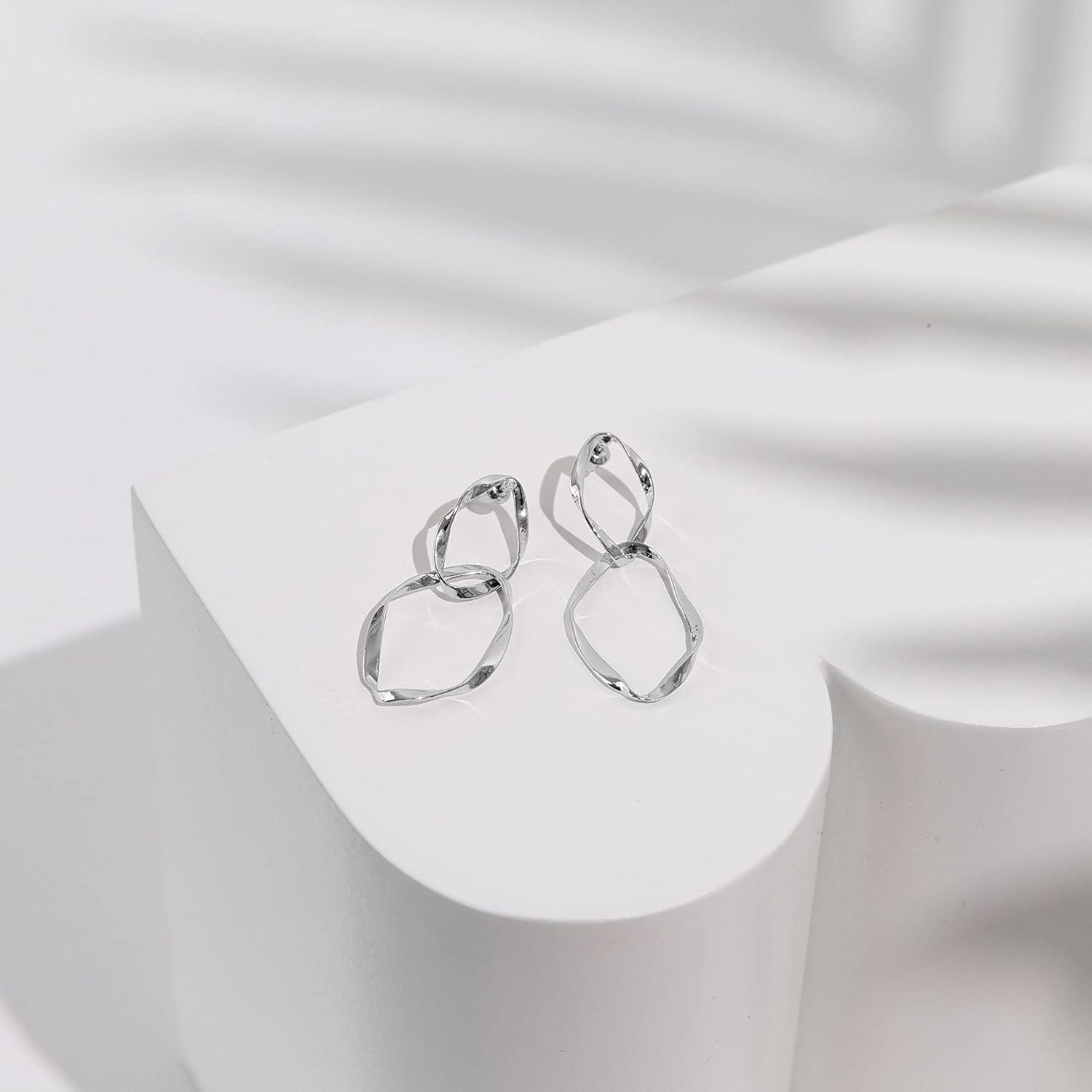 PAVOI 14K Gold Plated Dangle Earrings for Women | Infinity Cute Hanging Hoop Earrings(White Gold)