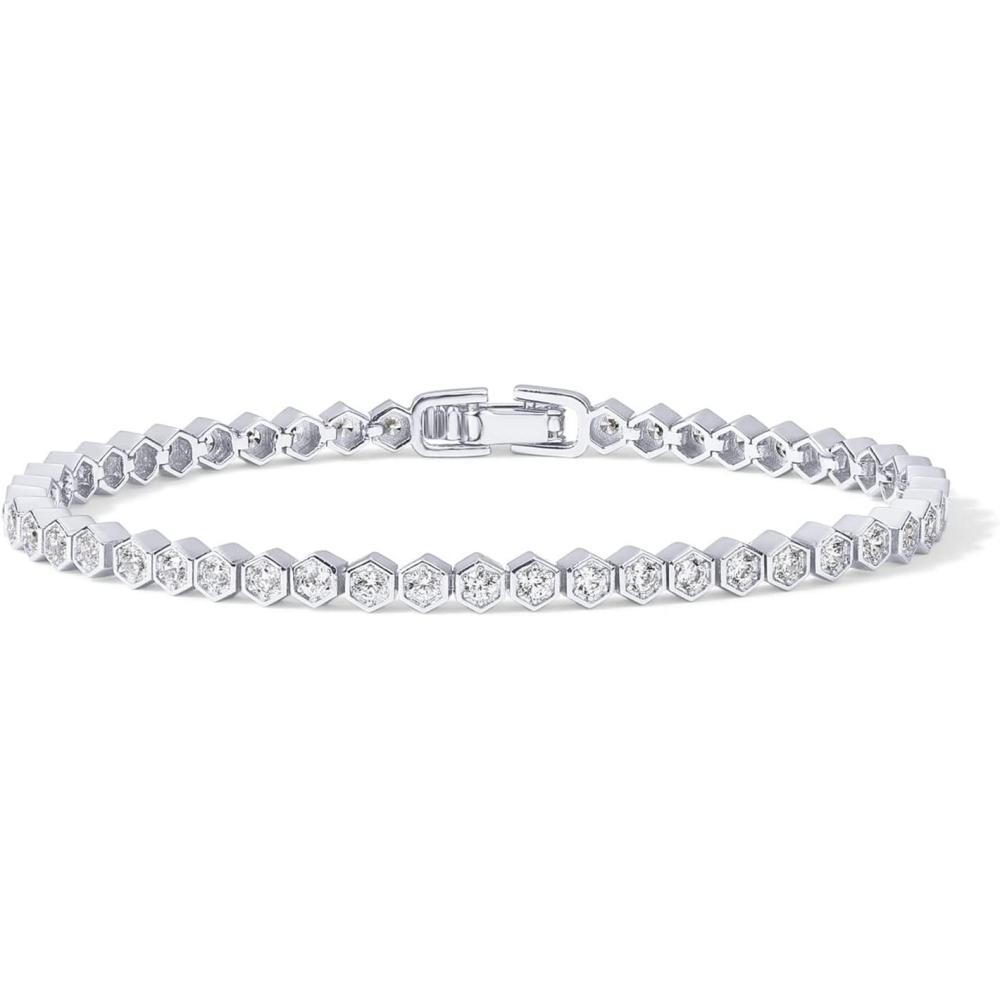 PAVOI 14K Gold Plated 2mm Cubic Zirconia Honeycomb Tennis Bracelet | Gold Bracelet for Women | SizeS 6.5-7.5 Inch(White Gold)