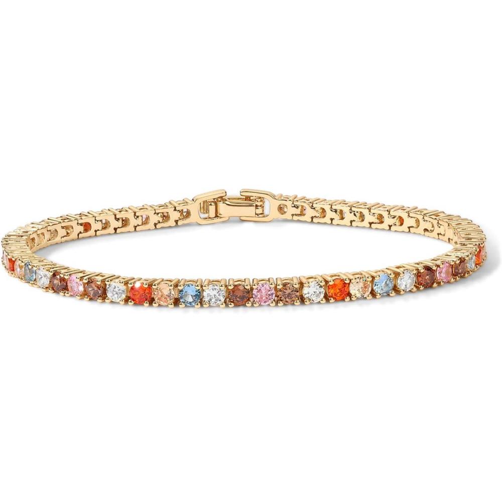 PAVOI 14K Gold Plated 3mm Multi Colored CZ Tennis Bracelet | Boho Cubic Zirconia Bracelet for Women | Size 6.5-7.5 Inch(Yellow Gold)