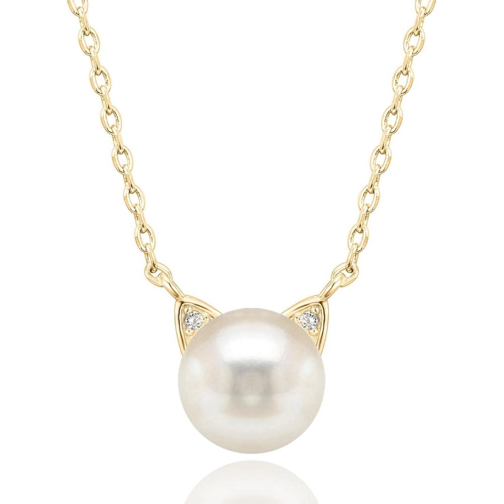 PAVOI 14K Gold Plated 925 Sterling Silver AAA+ Freshwater Cultured Pearl Cat Pearl Pendant(Yellow Gold)
