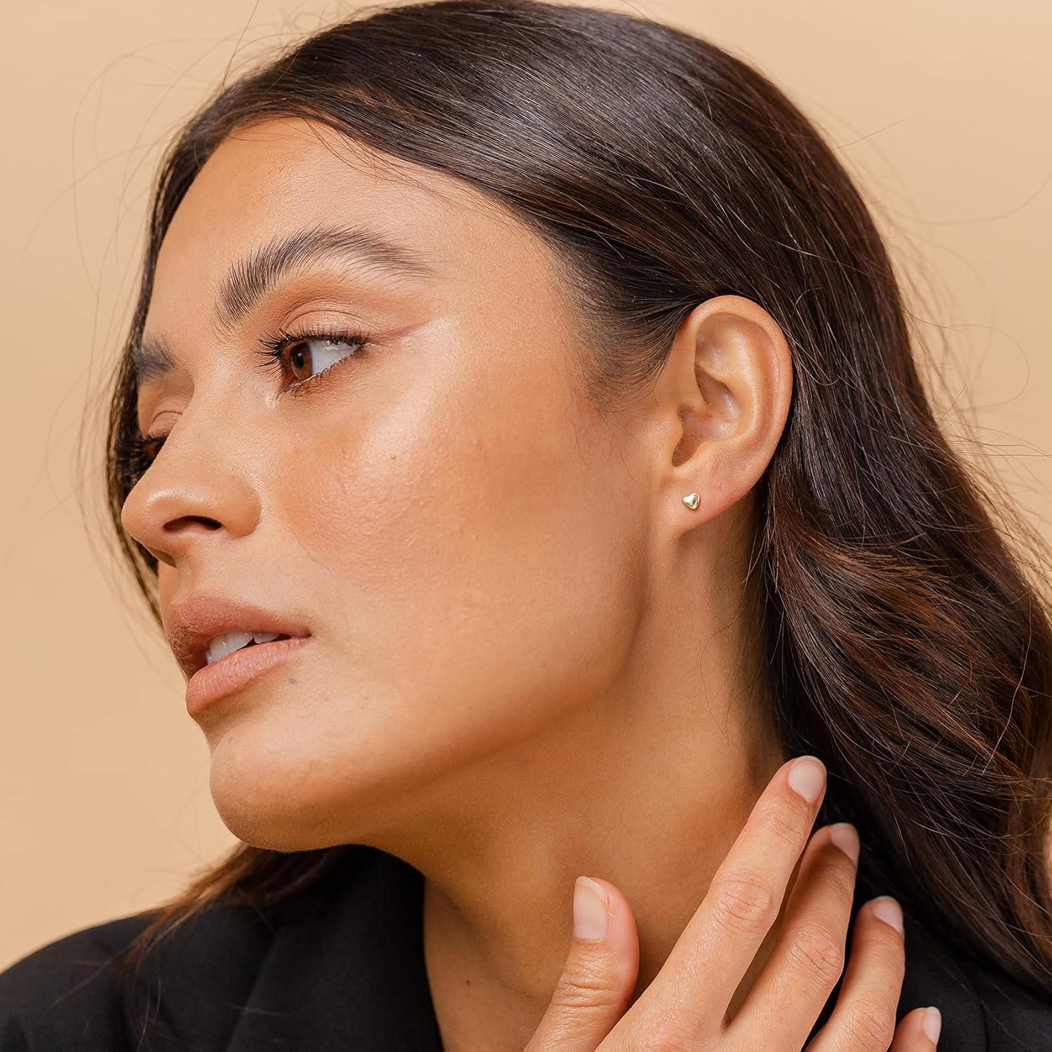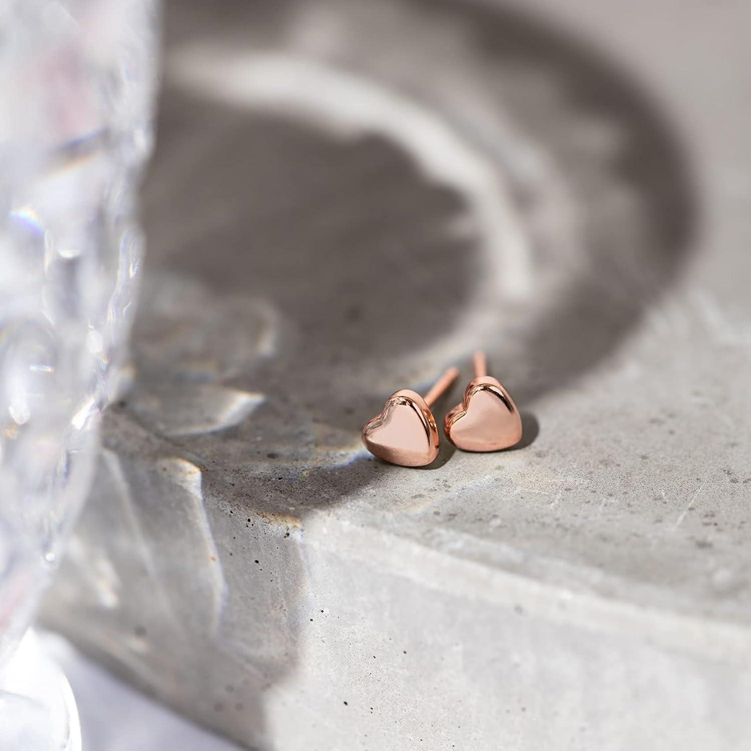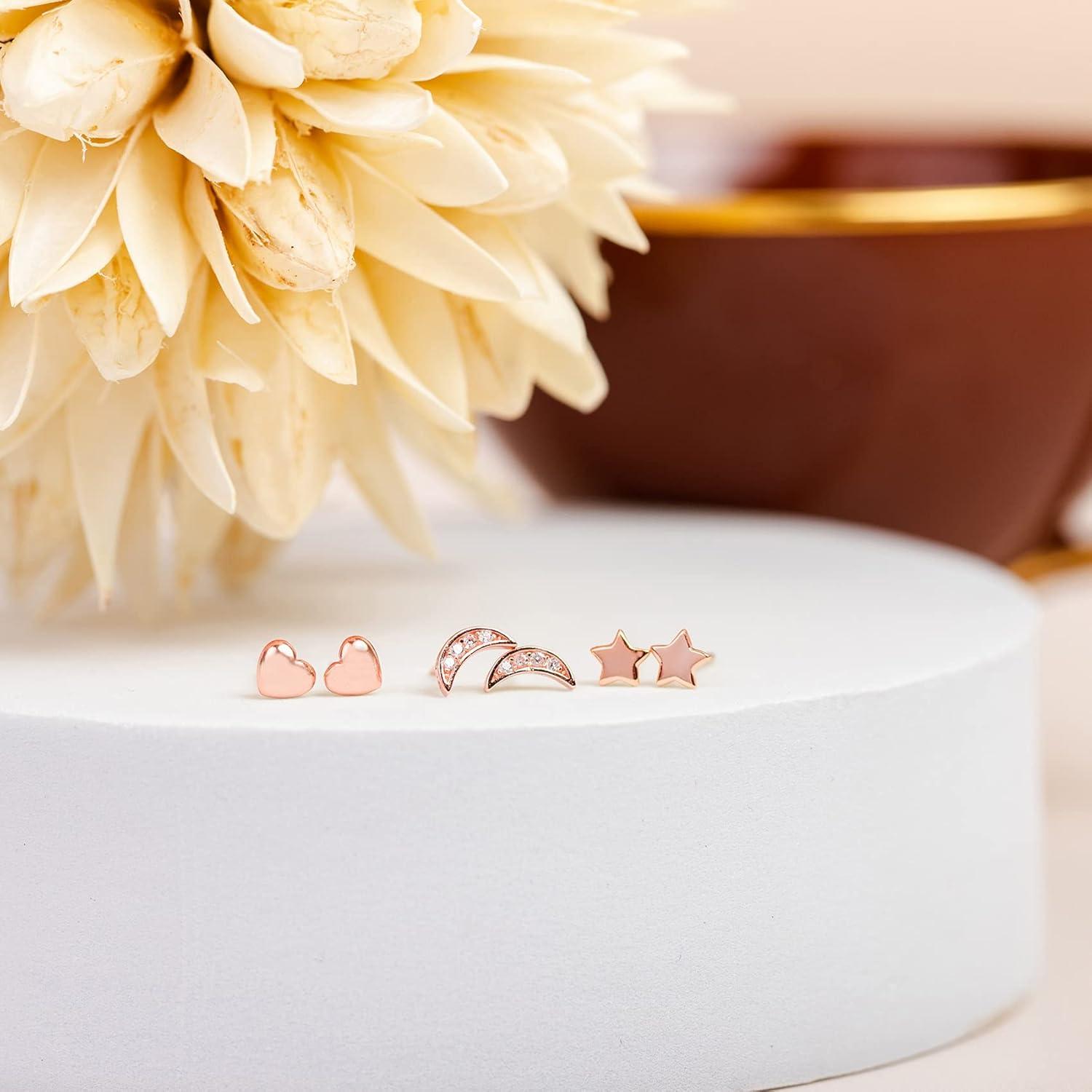 PAVOI 14K Gold Plated 925 Sterling Silver Bar, Dot, Heart, Triangle, Star, Cat | Dainty Earrings for Women(Rose Gold)
