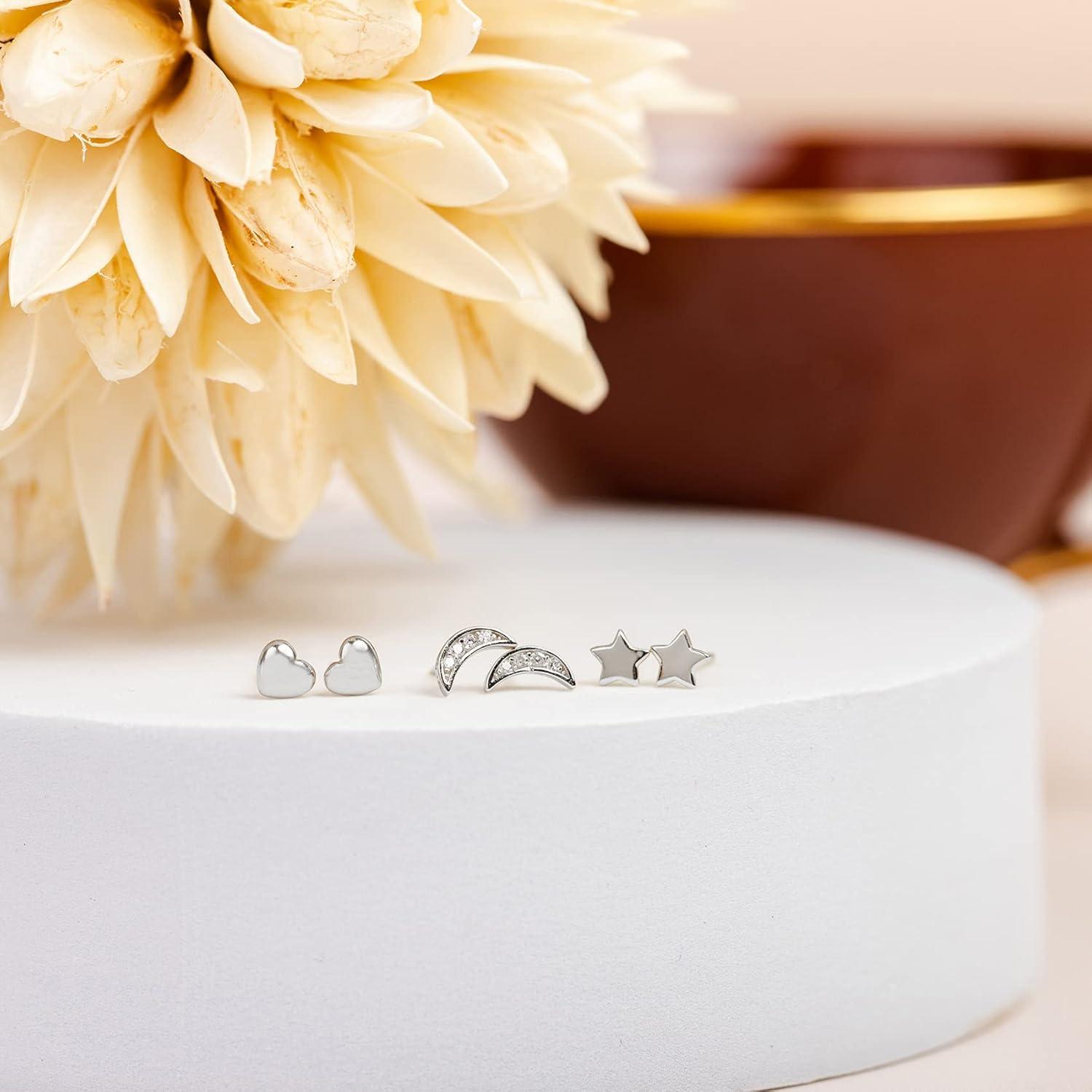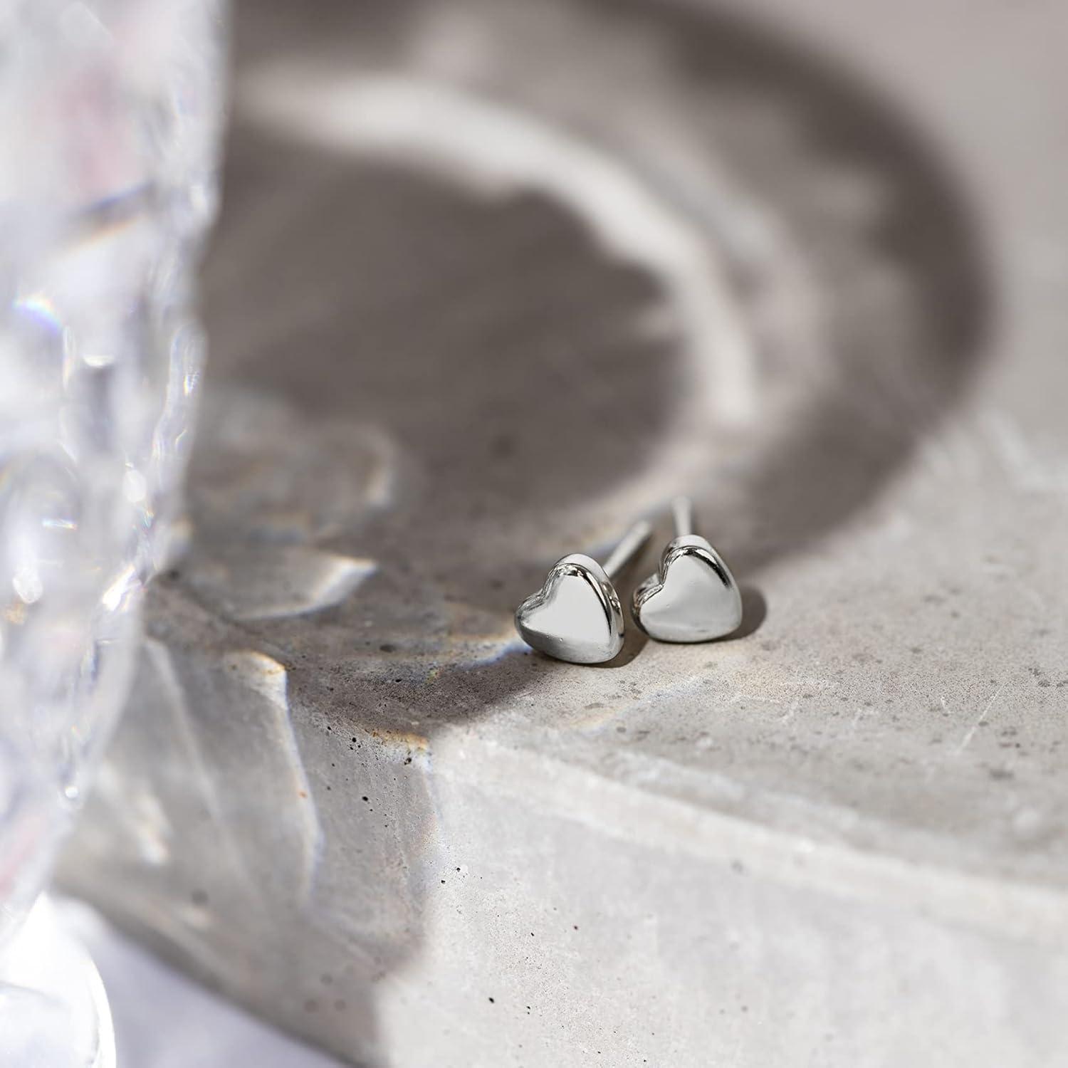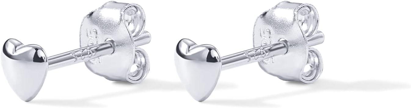 PAVOI 14K Gold Plated 925 Sterling Silver Bar, Dot, Heart, Triangle, Star, Cat | Dainty Earrings for Women(White Gold)