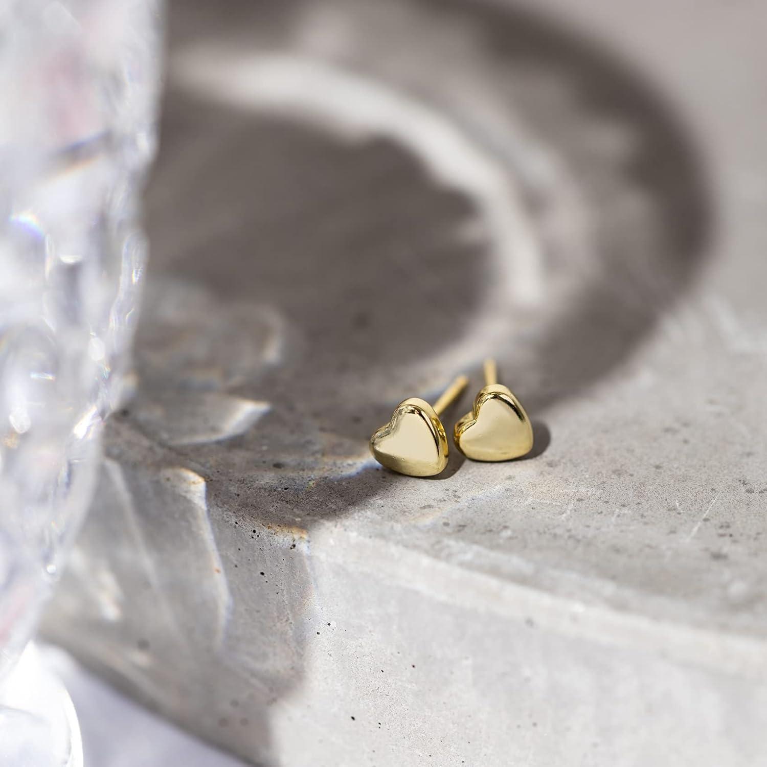 PAVOI 14K Gold Plated 925 Sterling Silver Bar, Dot, Heart, Triangle, Star, Cat | Dainty Earrings for Women(Yellow Gold)