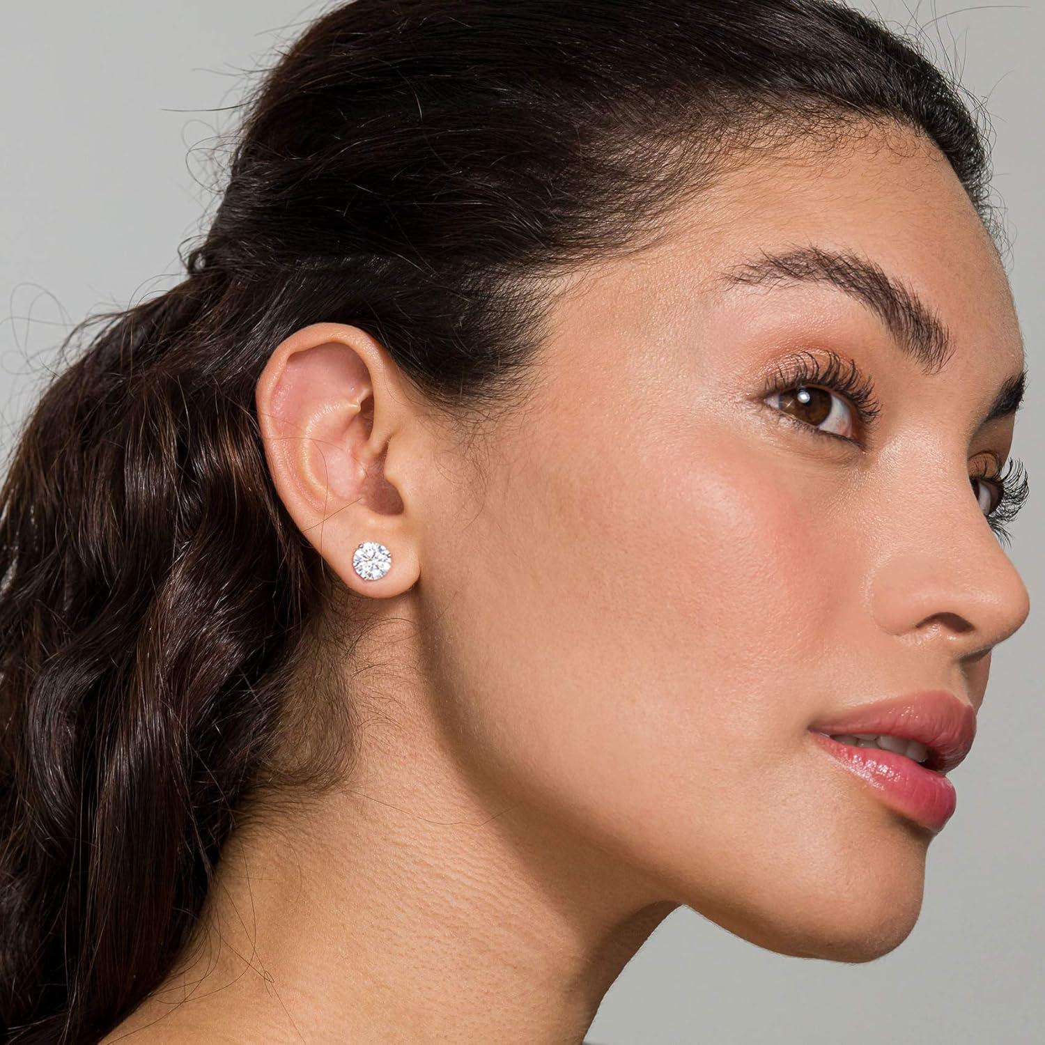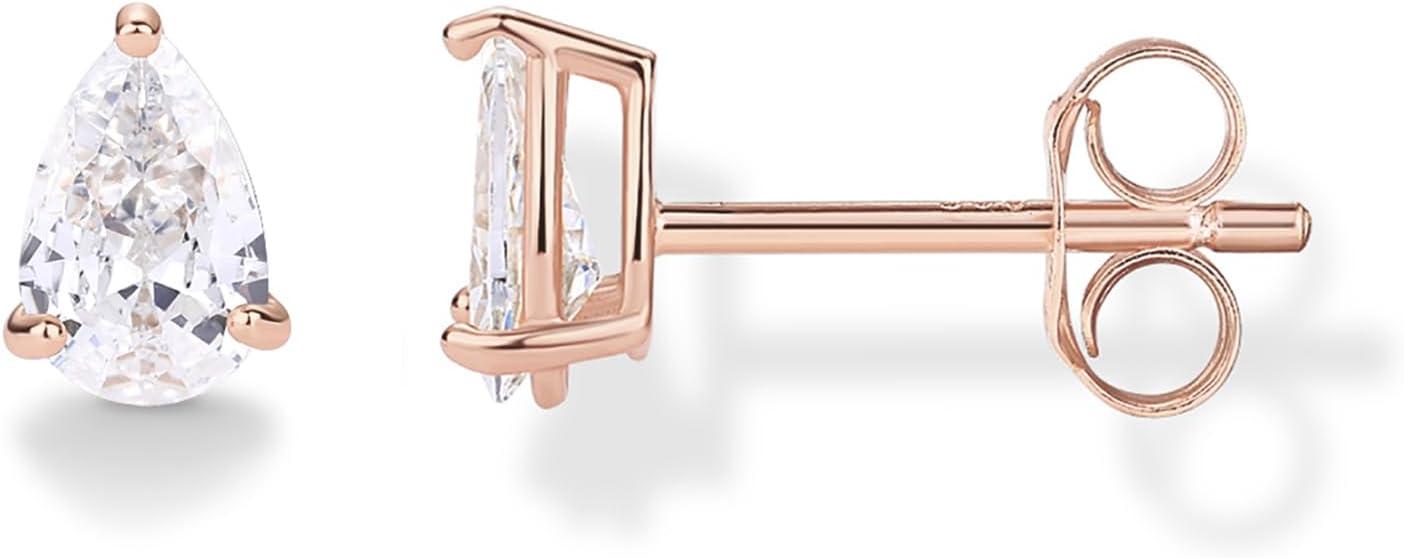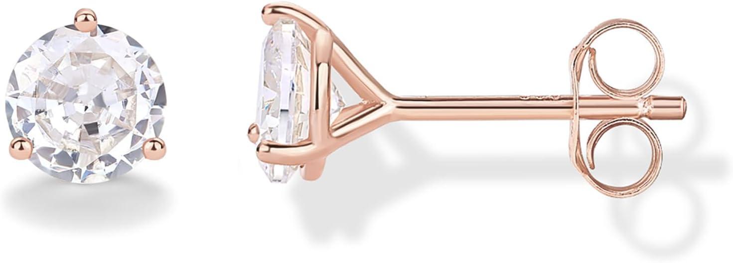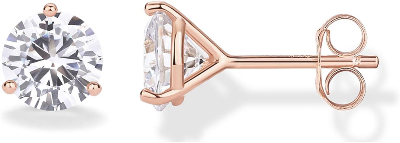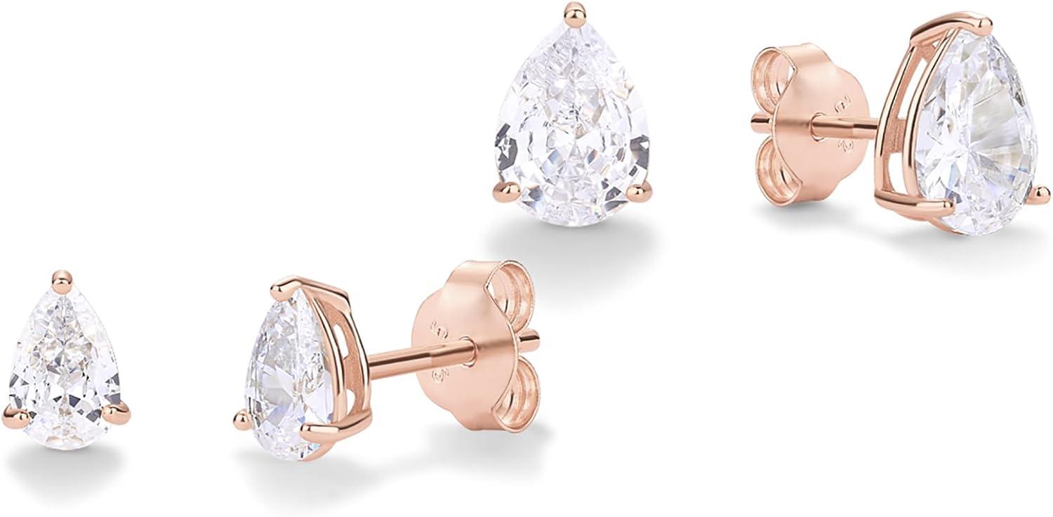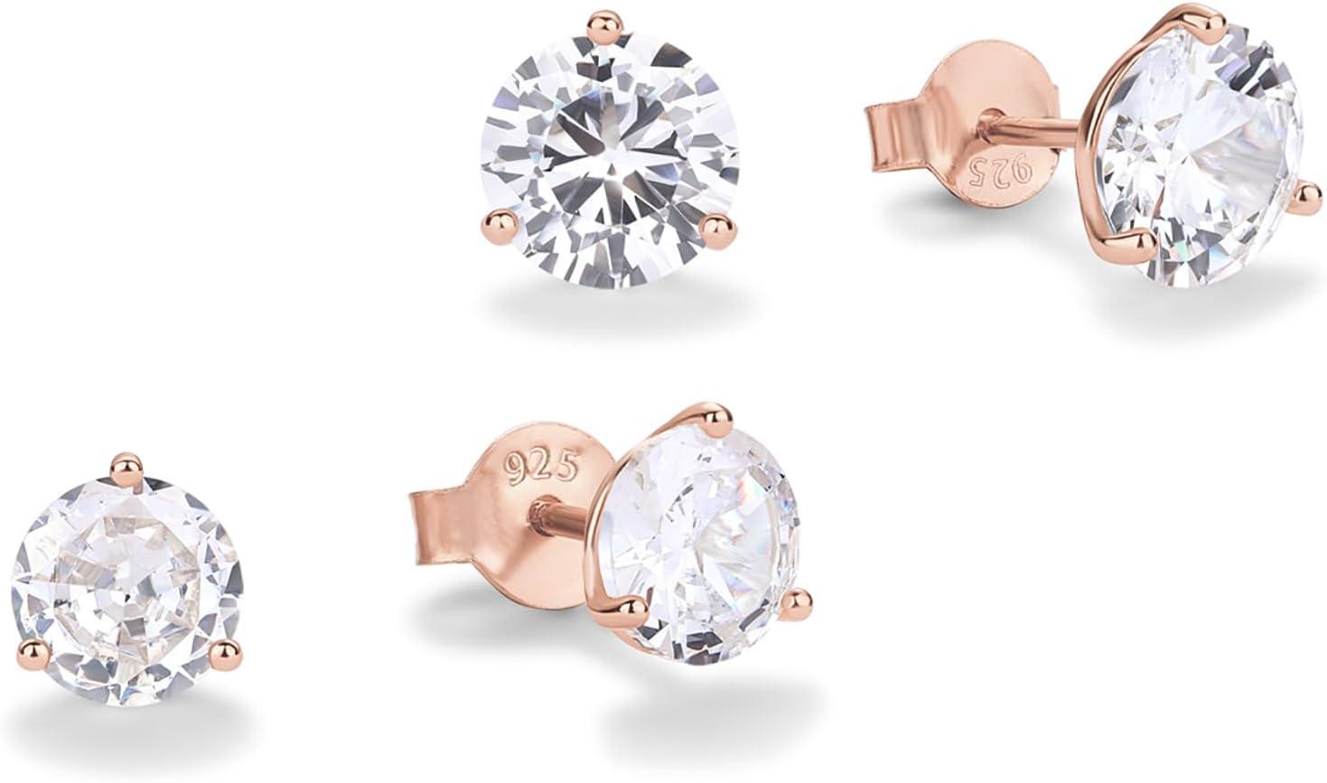 PAVOI 14K Gold Plated 925 Sterling Silver Cubic Zirconia Stud Earrings for Women | Simulated Diamond CZ Earrings(Rose Gold)