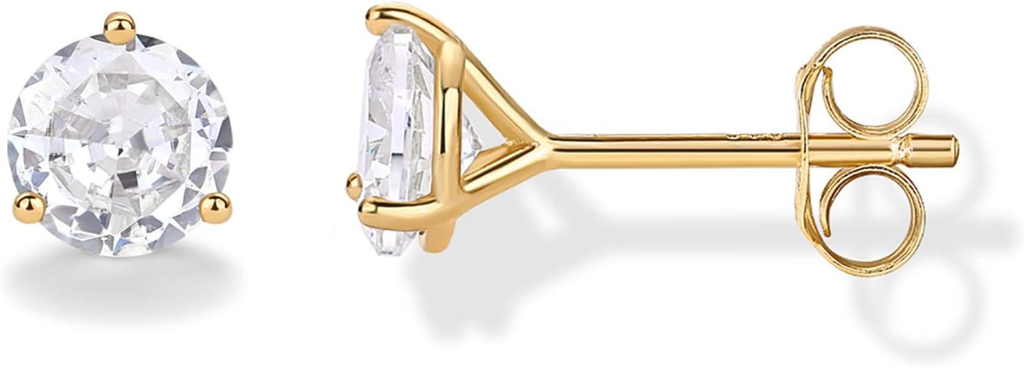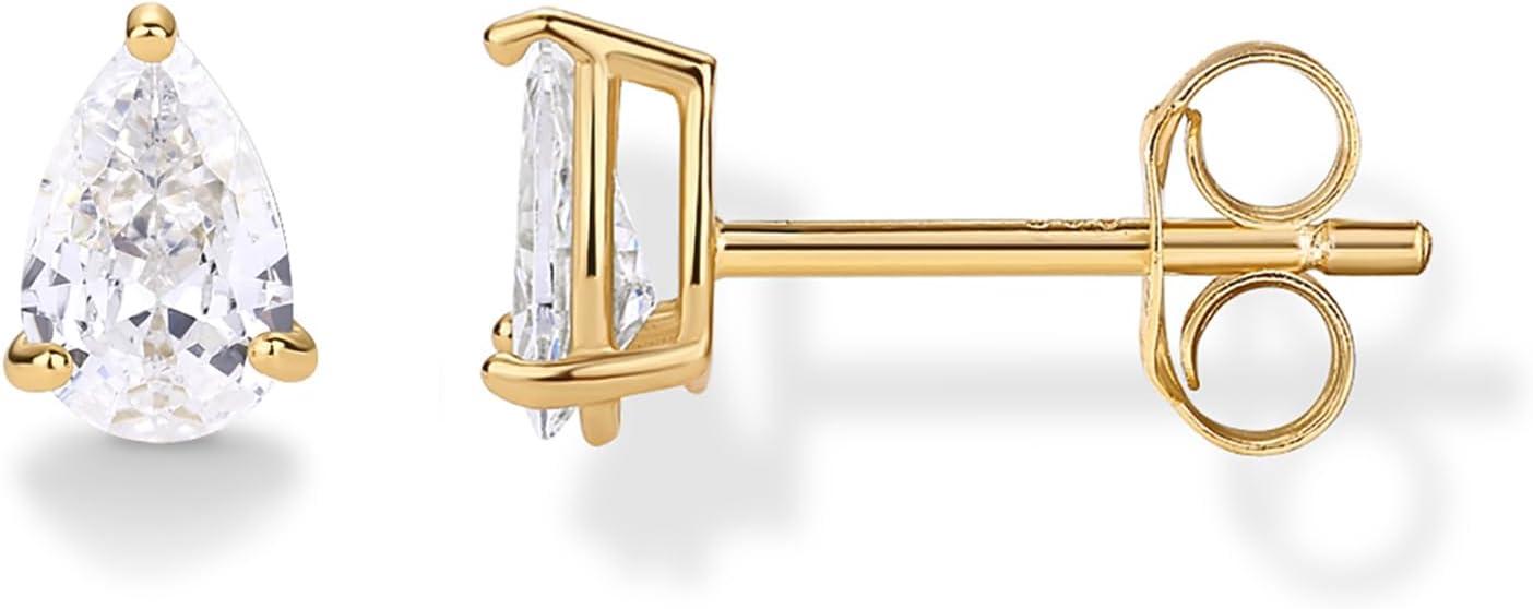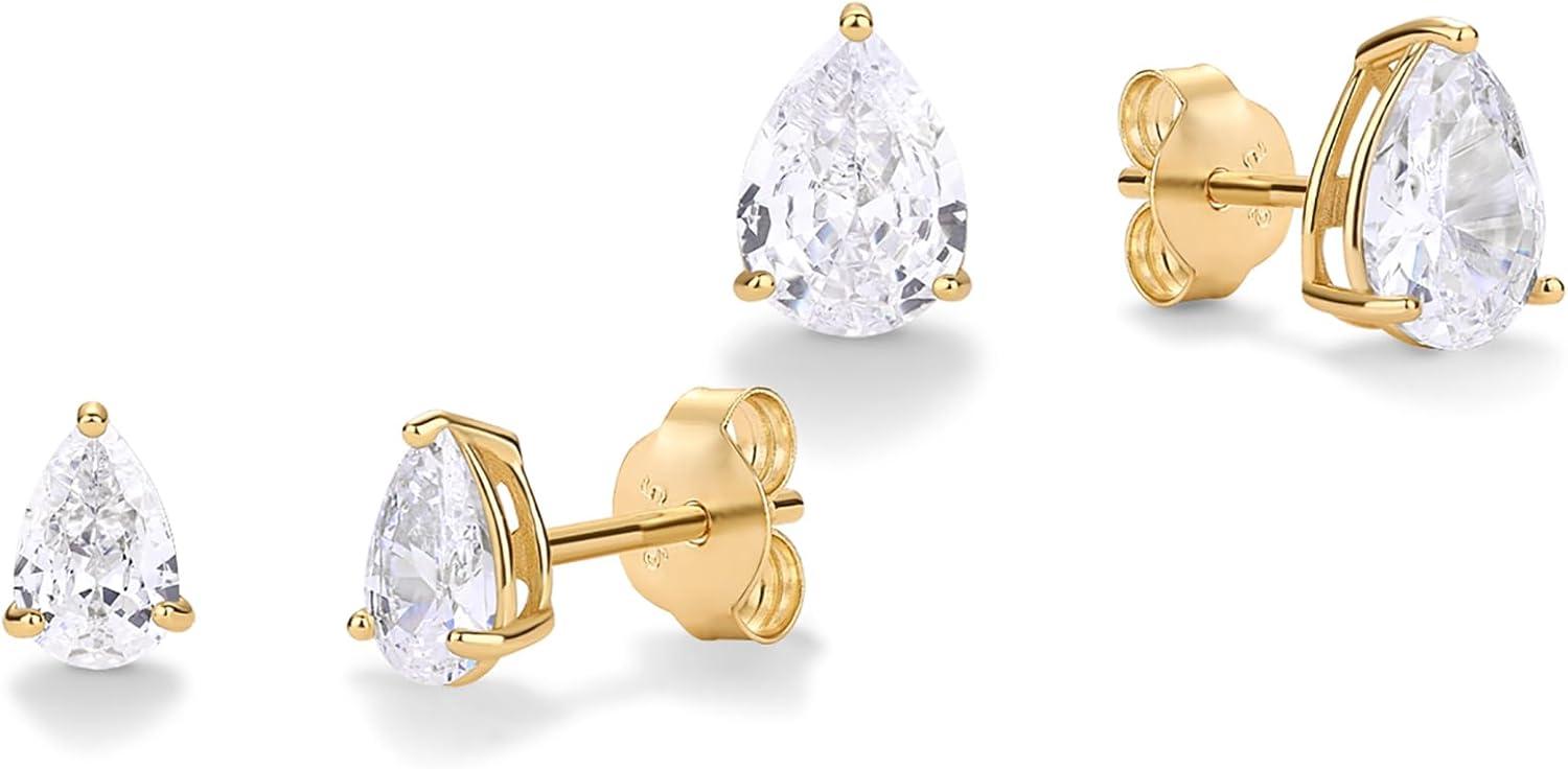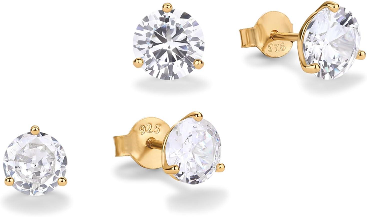 PAVOI 14K Gold Plated 925 Sterling Silver Cubic Zirconia Stud Earrings for Women | Simulated Diamond CZ Earrings(Yellow Gold)