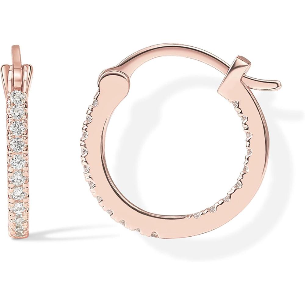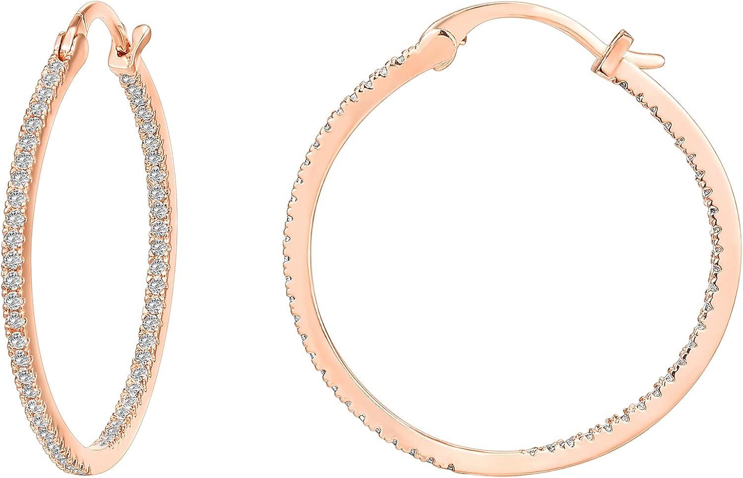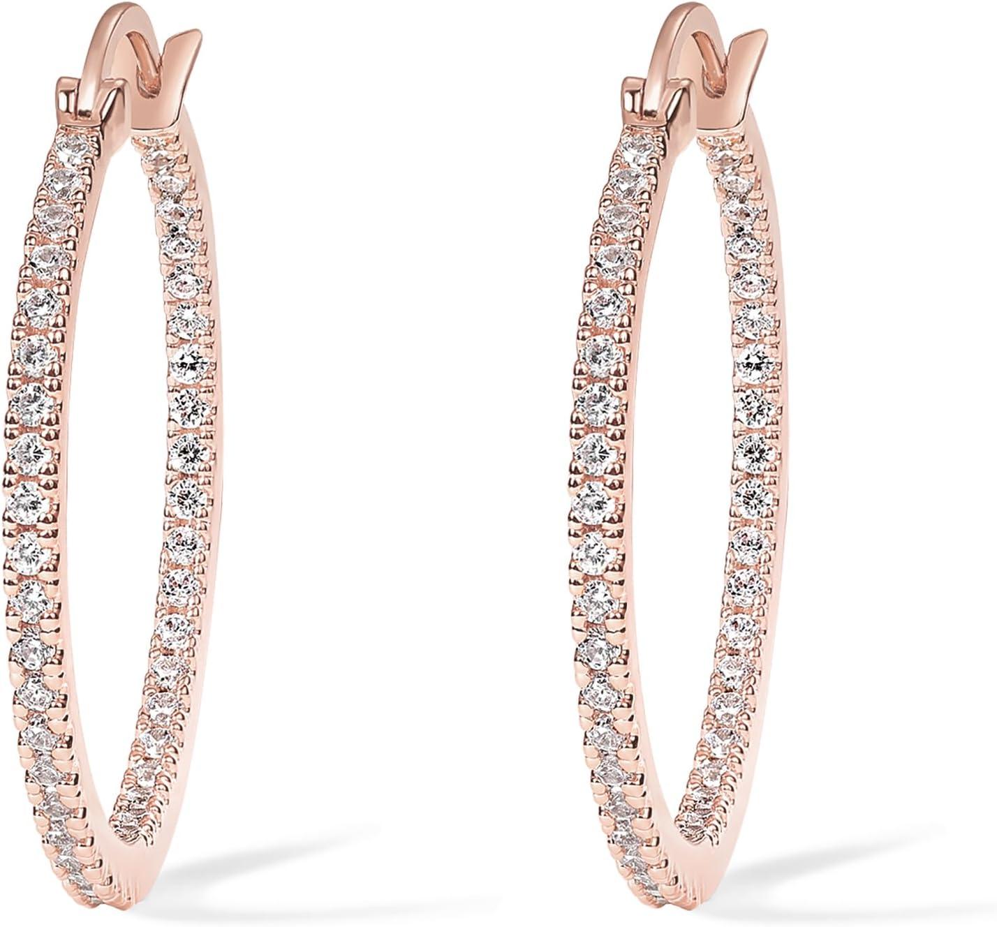 PAVOI 14K Gold Plated 925 Sterling Silver Post Cubic Zirconia Hoop Earrings 30/15mm(Rose Gold)