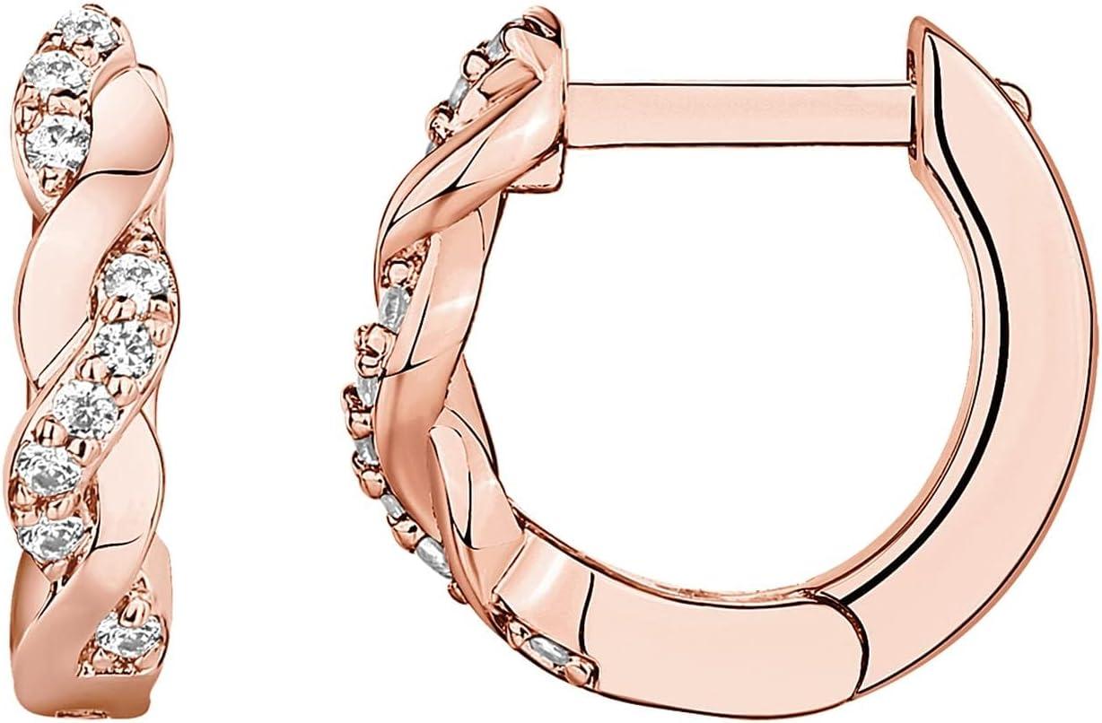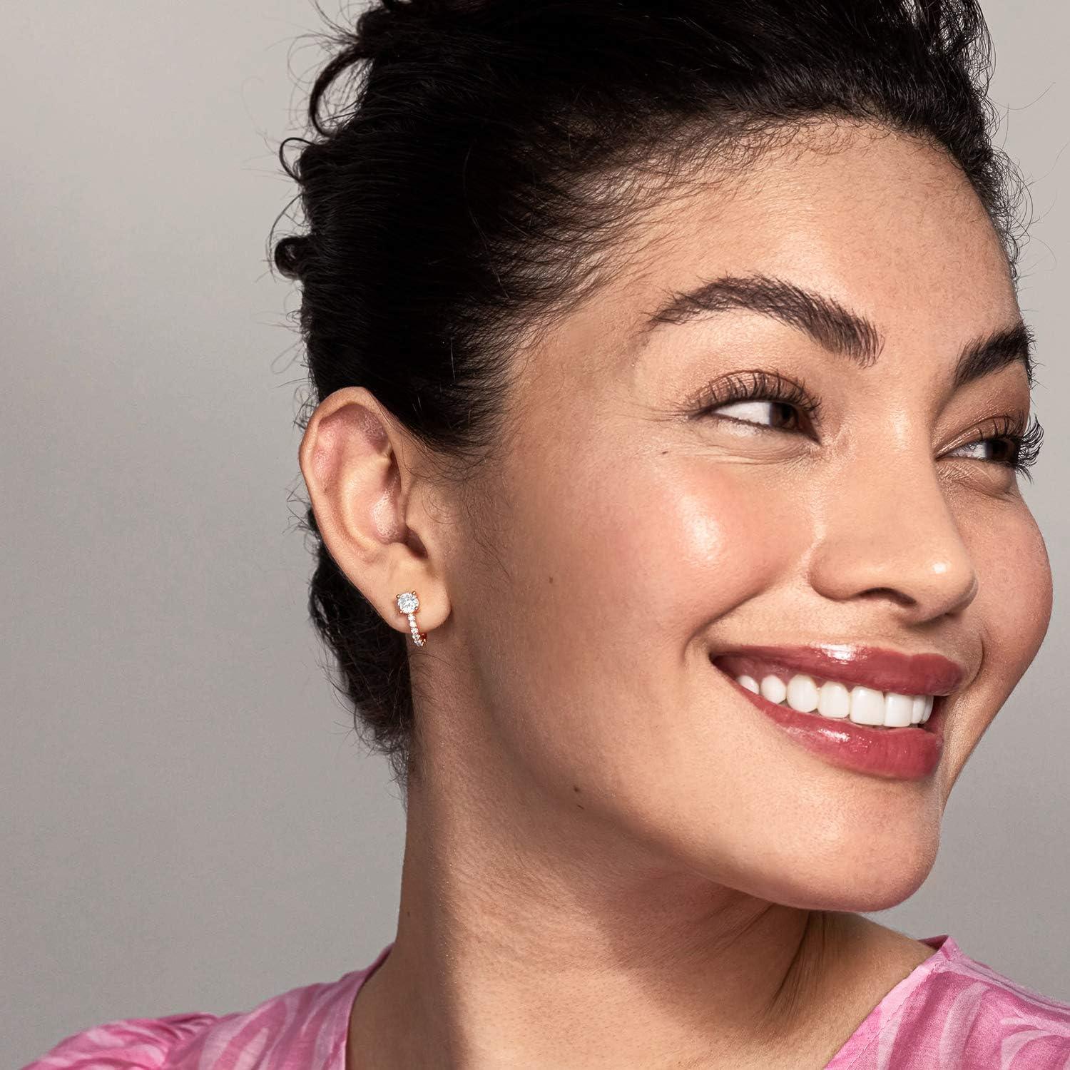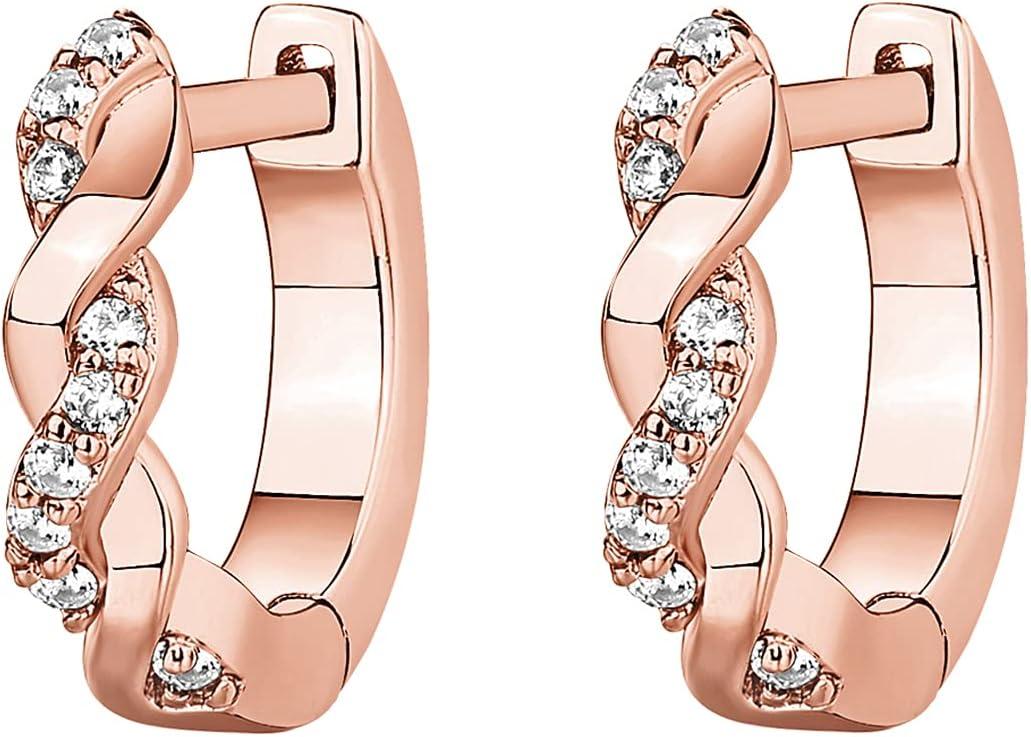 PAVOI 14K Gold Plated 925 Sterling Silver Post Cubic Zirconia Huggie Earrings | Small Gold Hoop Earrings for Women | CZ Stud Cuff Earring(Rose Gold)