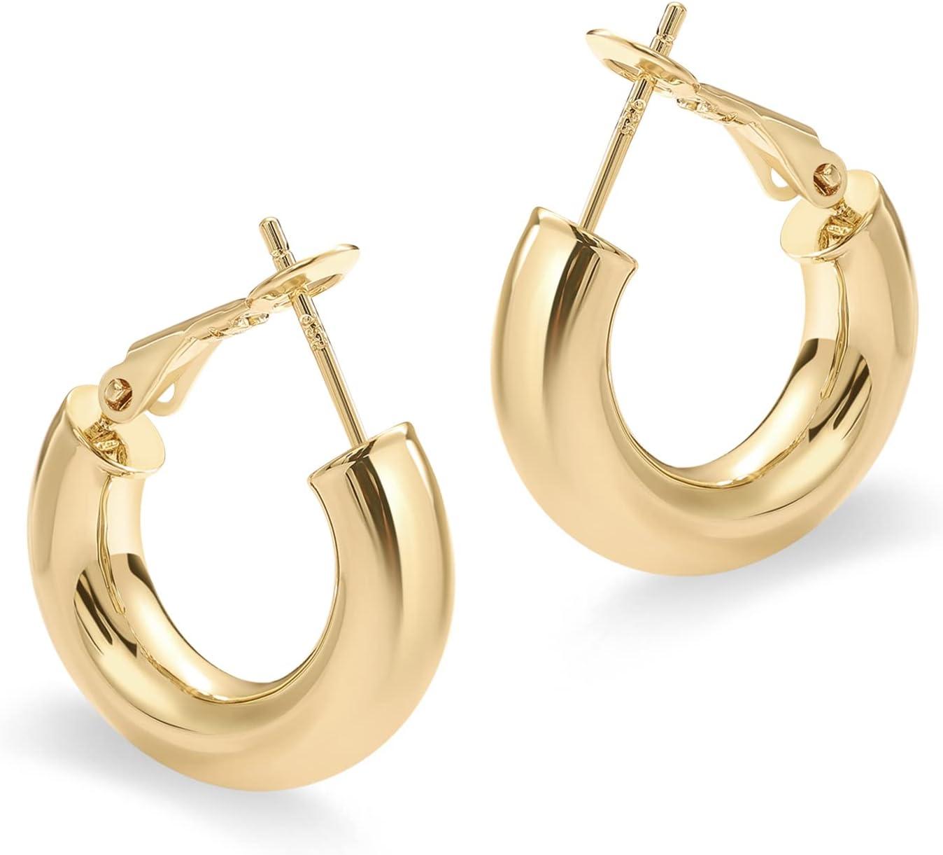 PAVOI 14K Gold Plated 925 Sterling Silver Post Hoops | Lightweight Chunky Hoops Huggies | Thick Gold Hoop Earrings for Women(20.0 Millimeters)