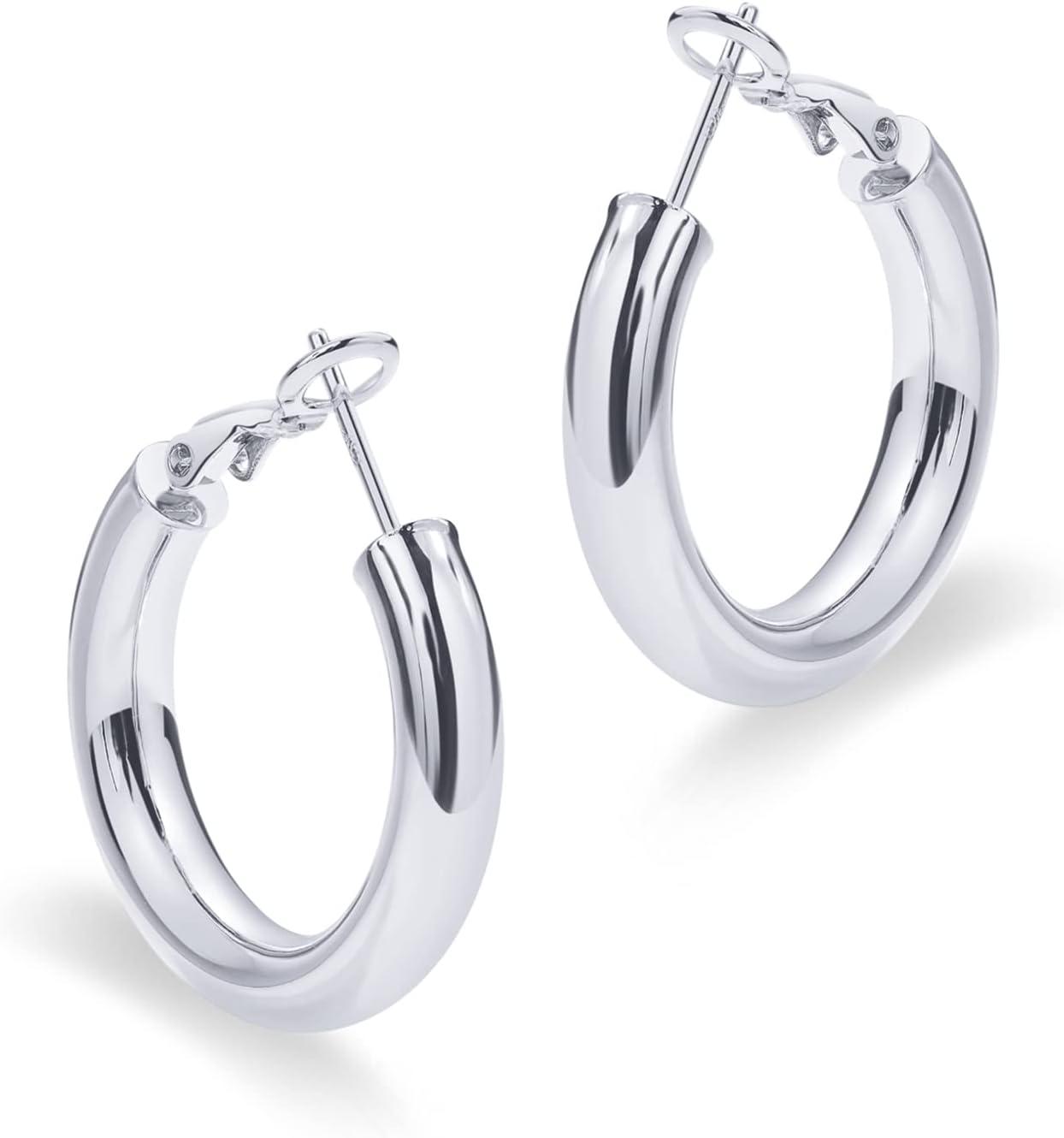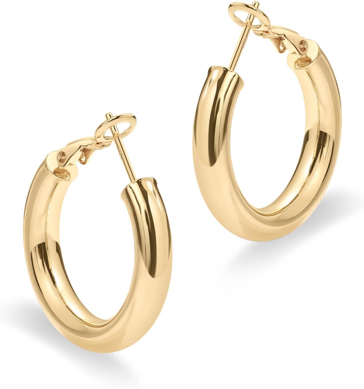 PAVOI 14K Gold Plated 925 Sterling Silver Post Hoops | Lightweight Chunky Hoops Huggies | Thick Gold Hoop Earrings for Women(30.0 Millimeters)