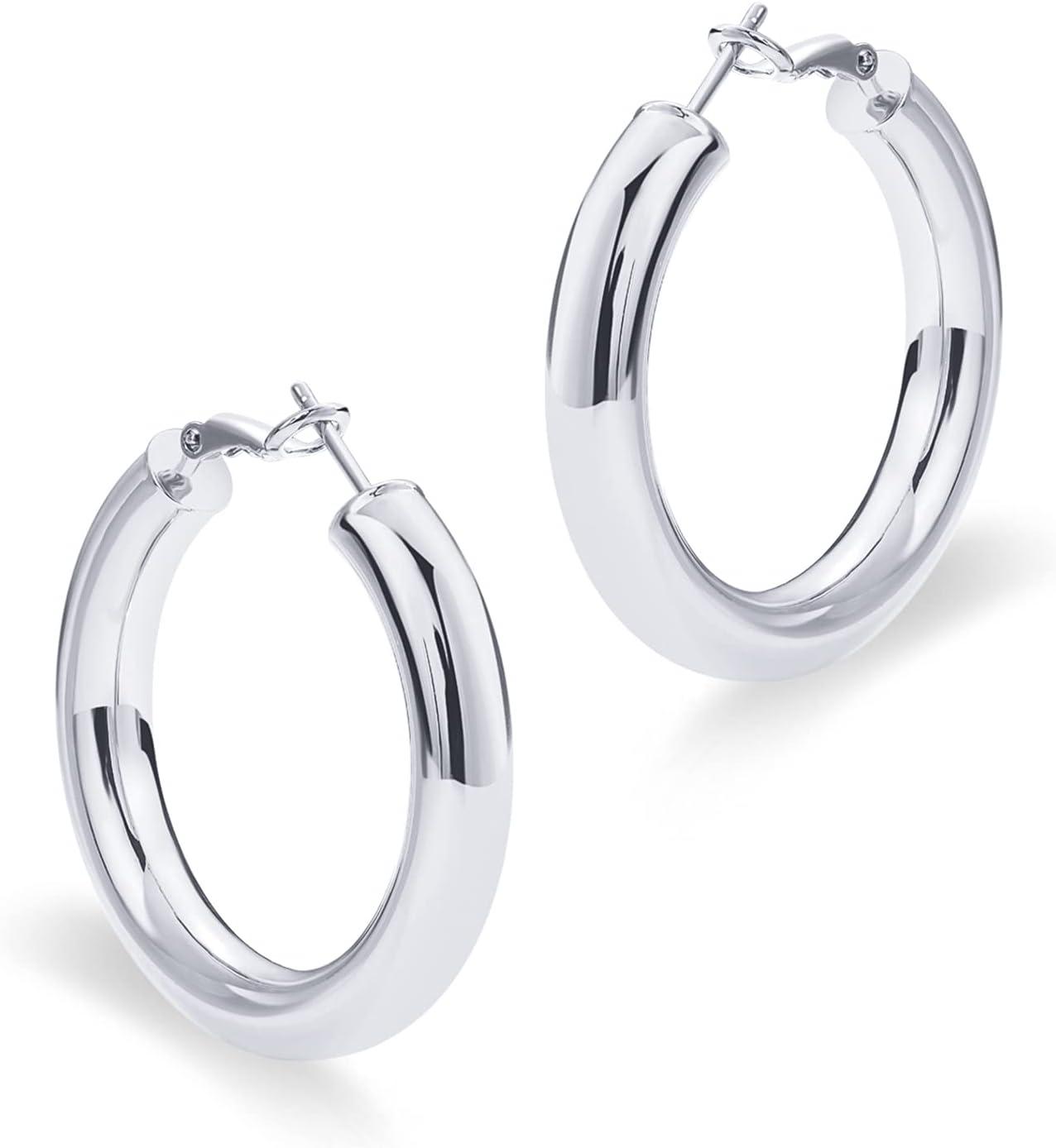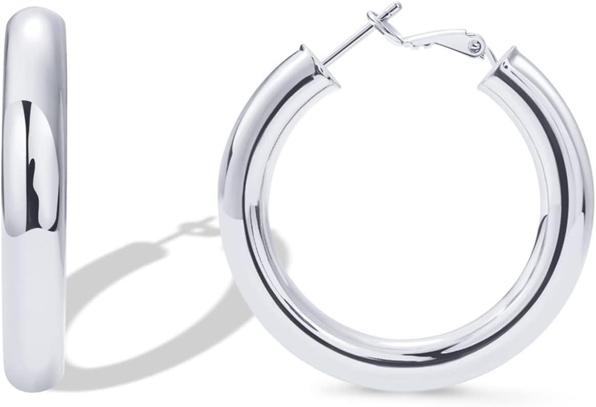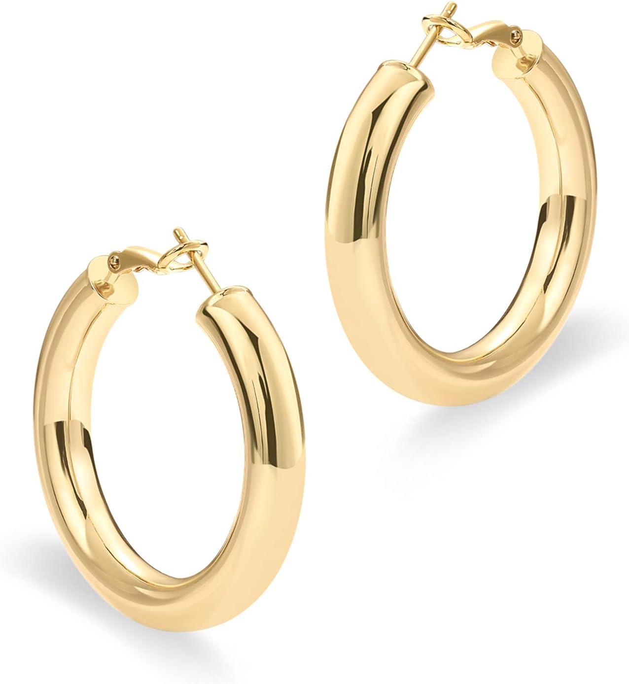 PAVOI 14K Gold Plated 925 Sterling Silver Post Hoops | Lightweight Chunky Hoops Huggies | Thick Gold Hoop Earrings for Women(40.0 Millimeters)
