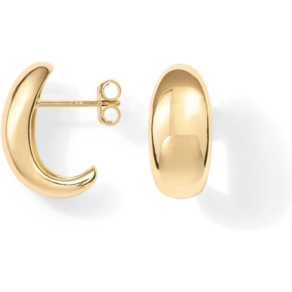 PAVOI 14K Gold Plated 925 Sterling Silver Post Huggie Earrings | Gold Dome Huggie Hoop Earrings for Women(Yellow Gold)