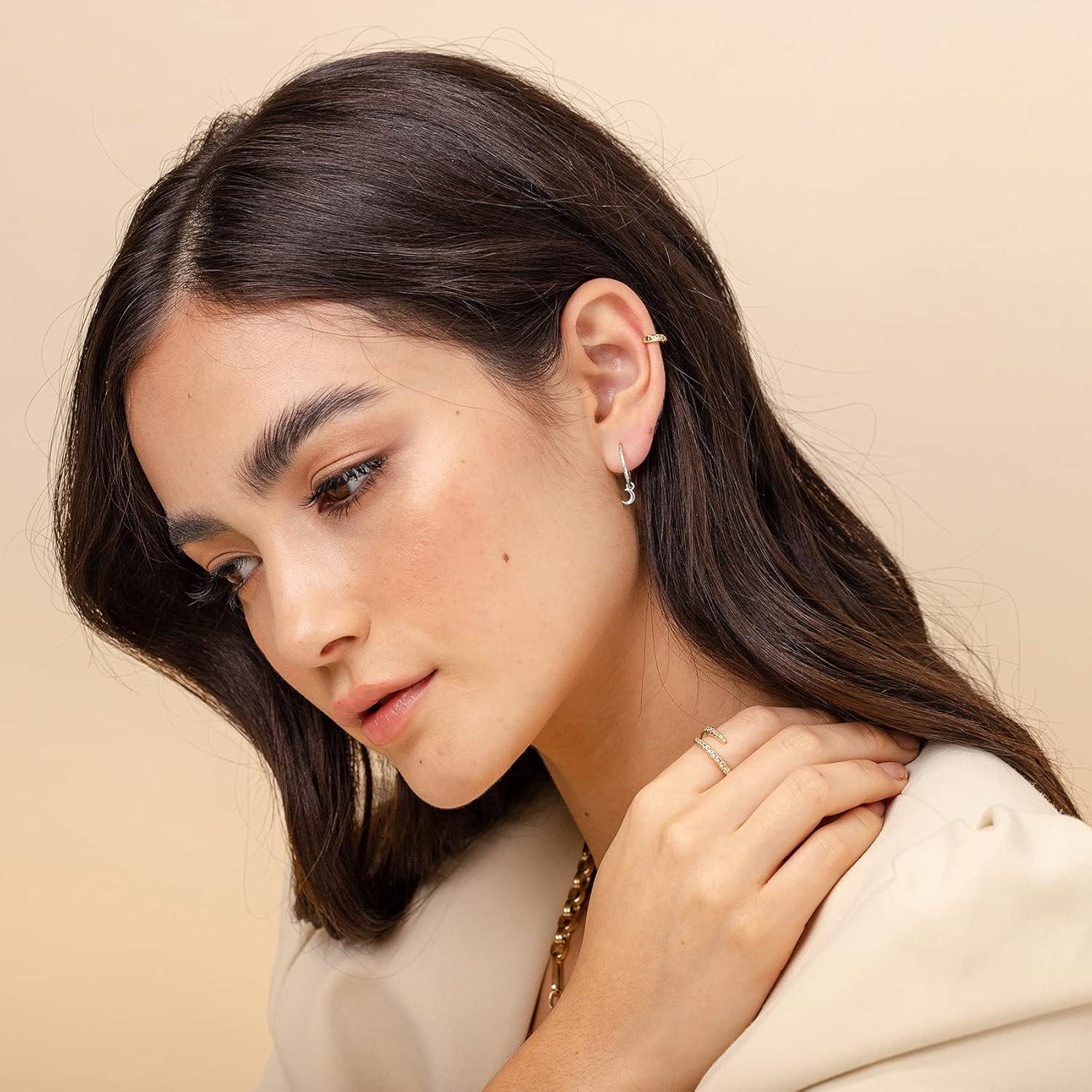 PAVOI 14K Gold Plated 925 Sterling Silver Post Huggie With Dangle | Small Hoop Earrings For Women | Trendy Dangle Hoop Earrings(White Gold)