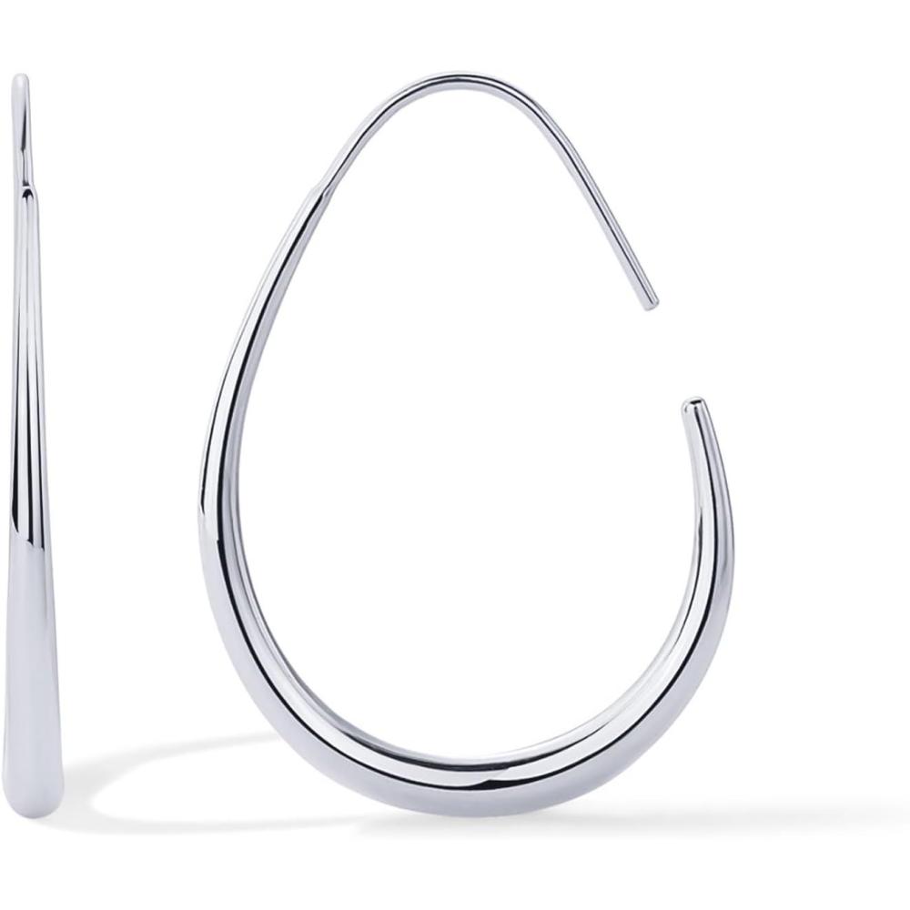 PAVOI 14K Gold Plated 925 Sterling Silver Post Lightweight Teardrop Hoop Earrings for Women | Large Oval Pull-Through Statement Earrings(White Gold)