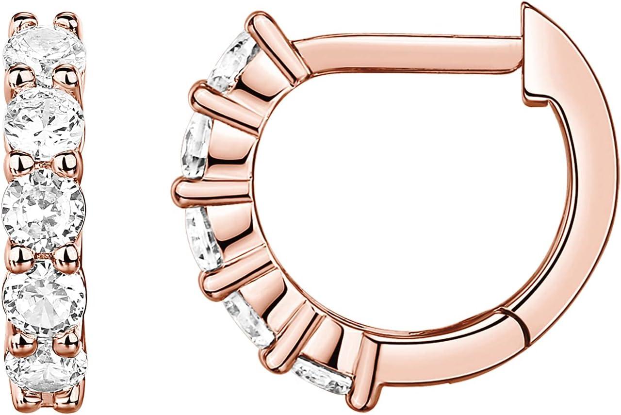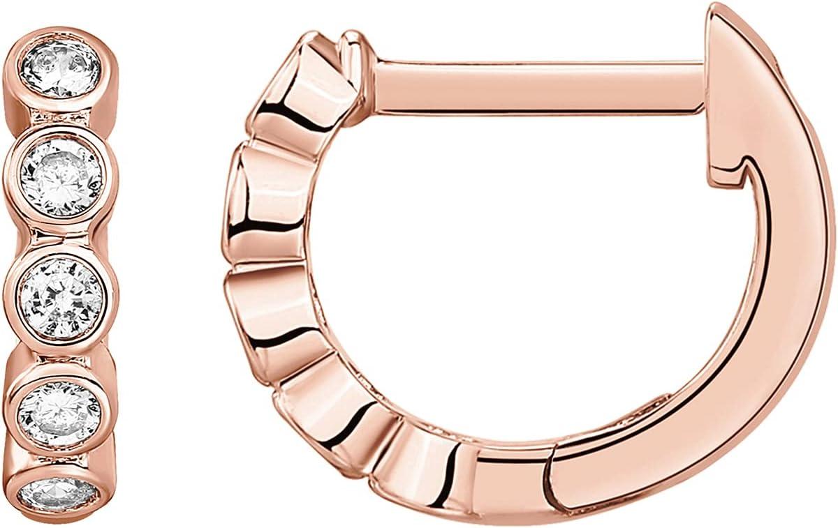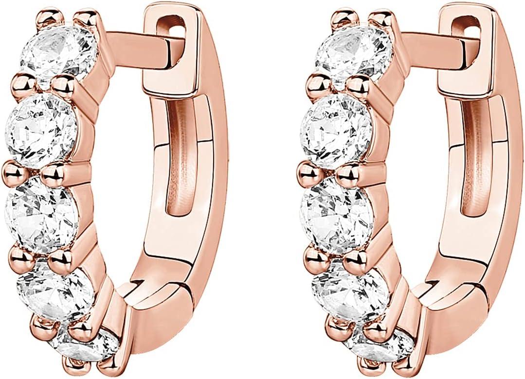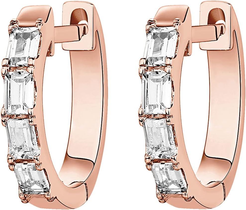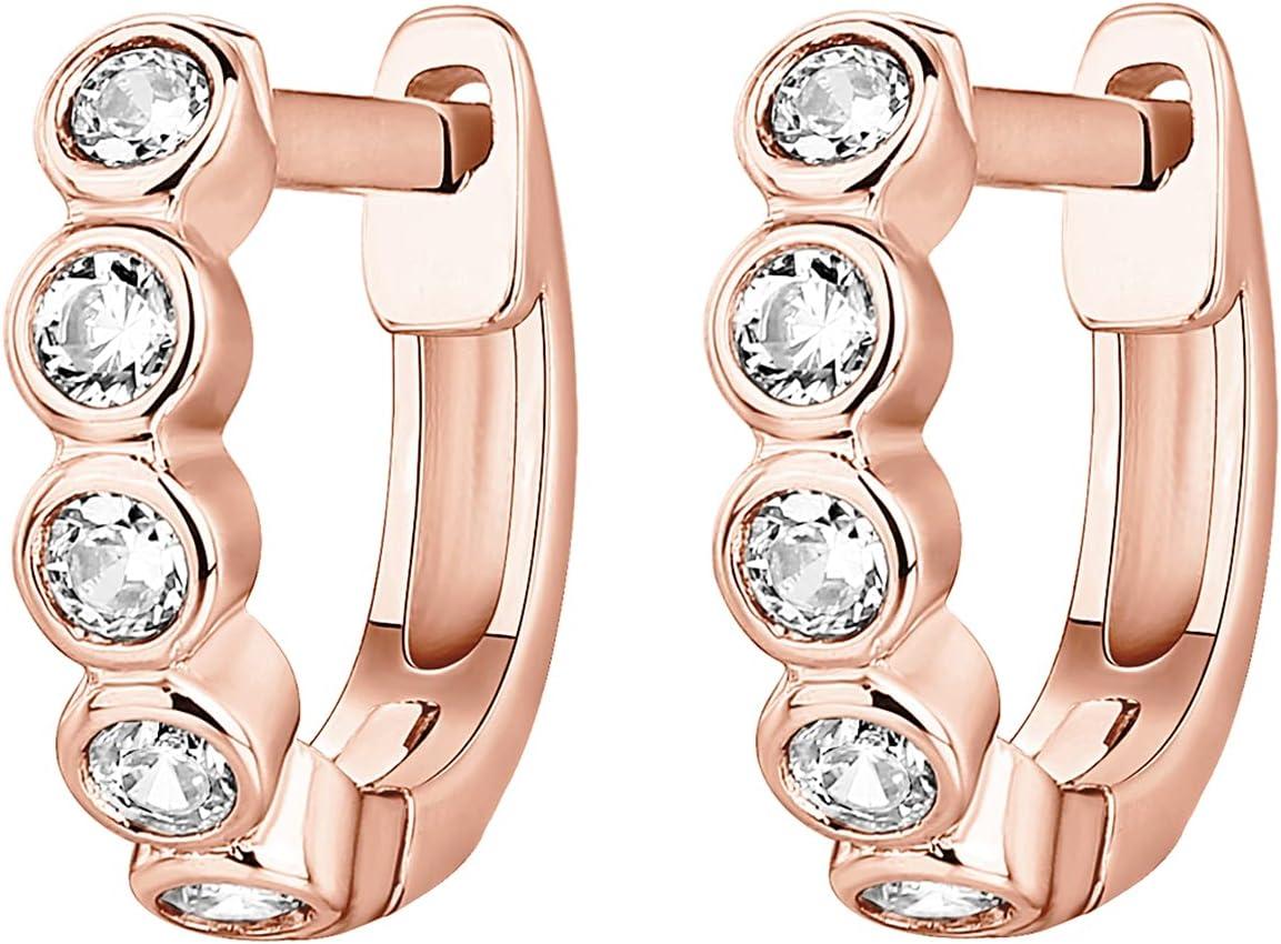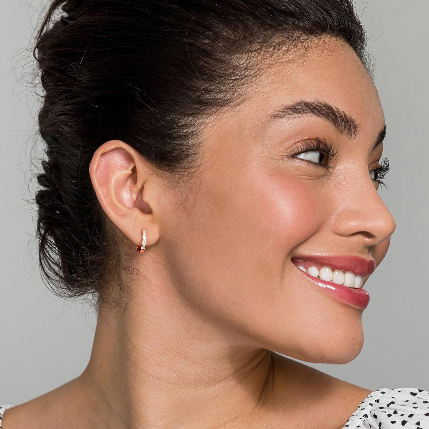 PAVOI 14K Gold Plated 925 Sterling Silver Post Pave Cubic Zirconia Huggie Hoop Earrings for Women(Rose Gold)