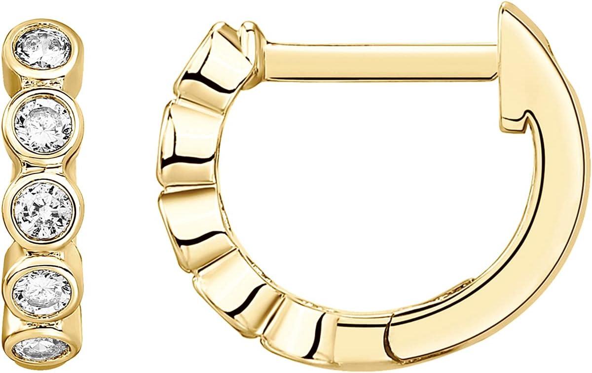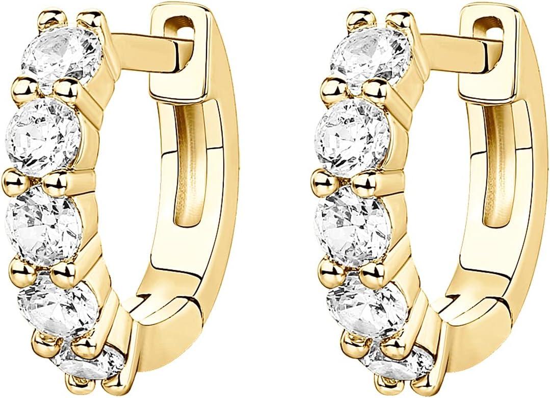 PAVOI 14K Gold Plated 925 Sterling Silver Post Pave Cubic Zirconia Huggie Hoop Earrings for Women(Yellow Gold)