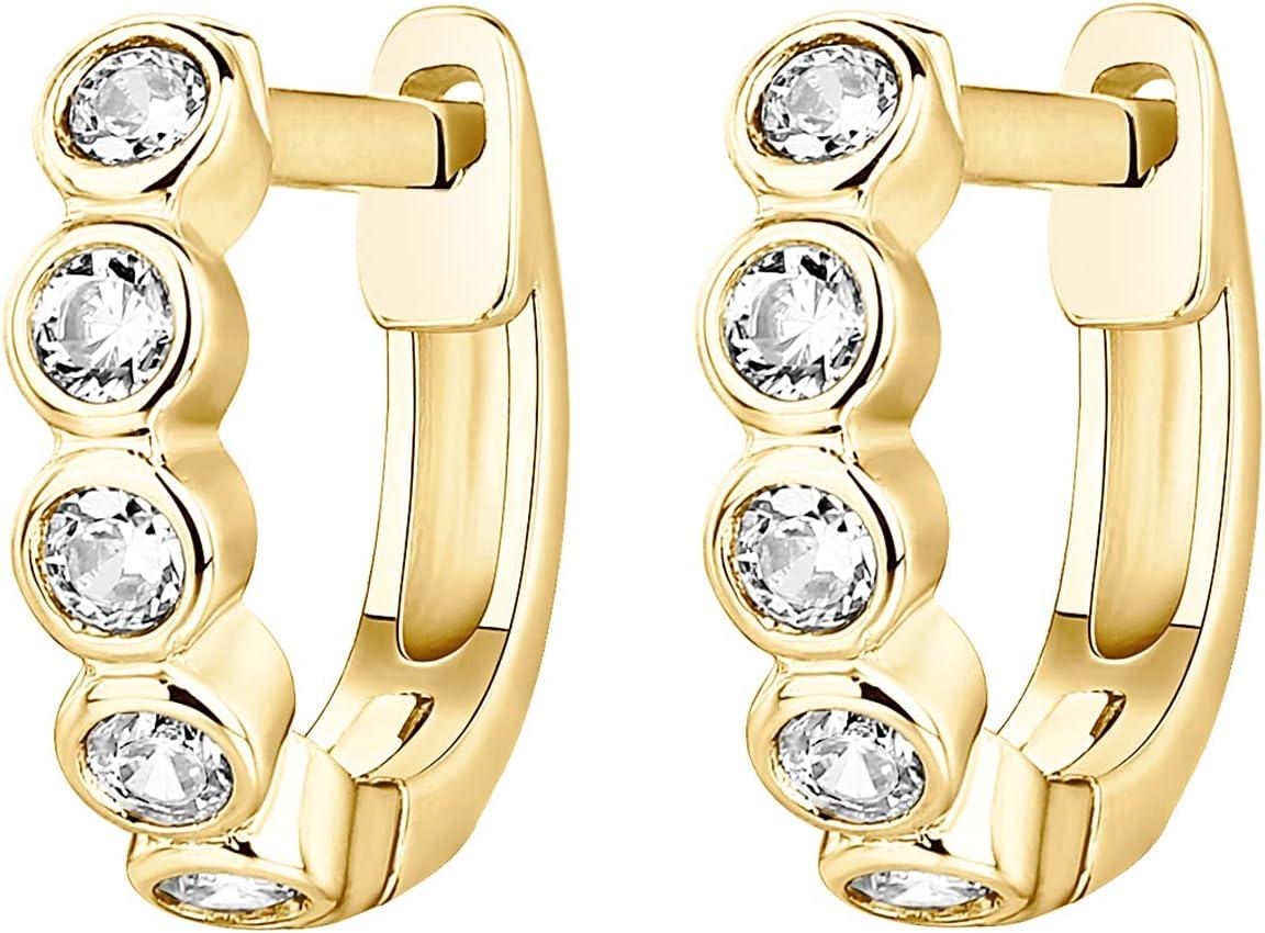 PAVOI 14K Gold Plated 925 sterling silver Post Pave Cubic Zirconia Huggie Hoop Earrings for Women