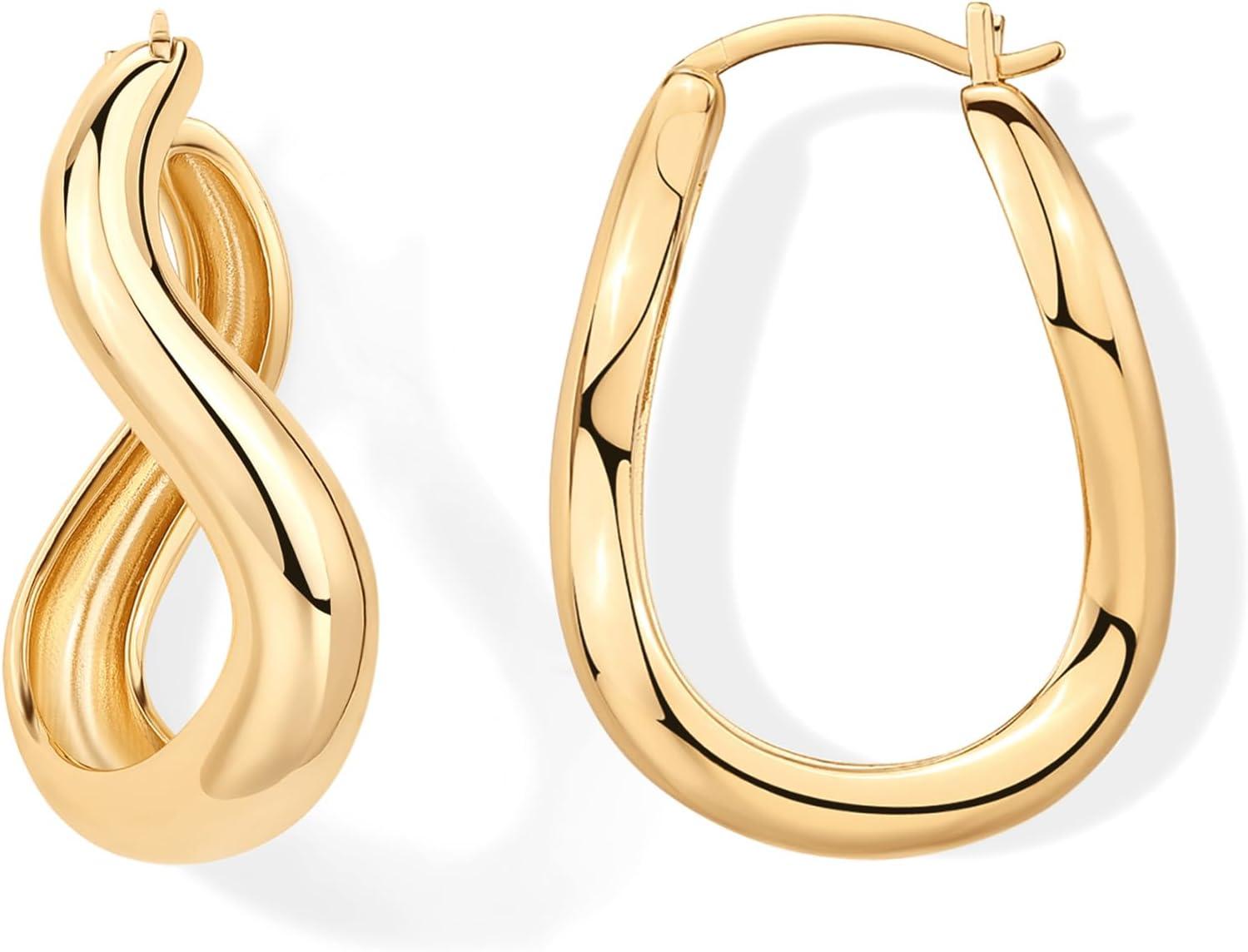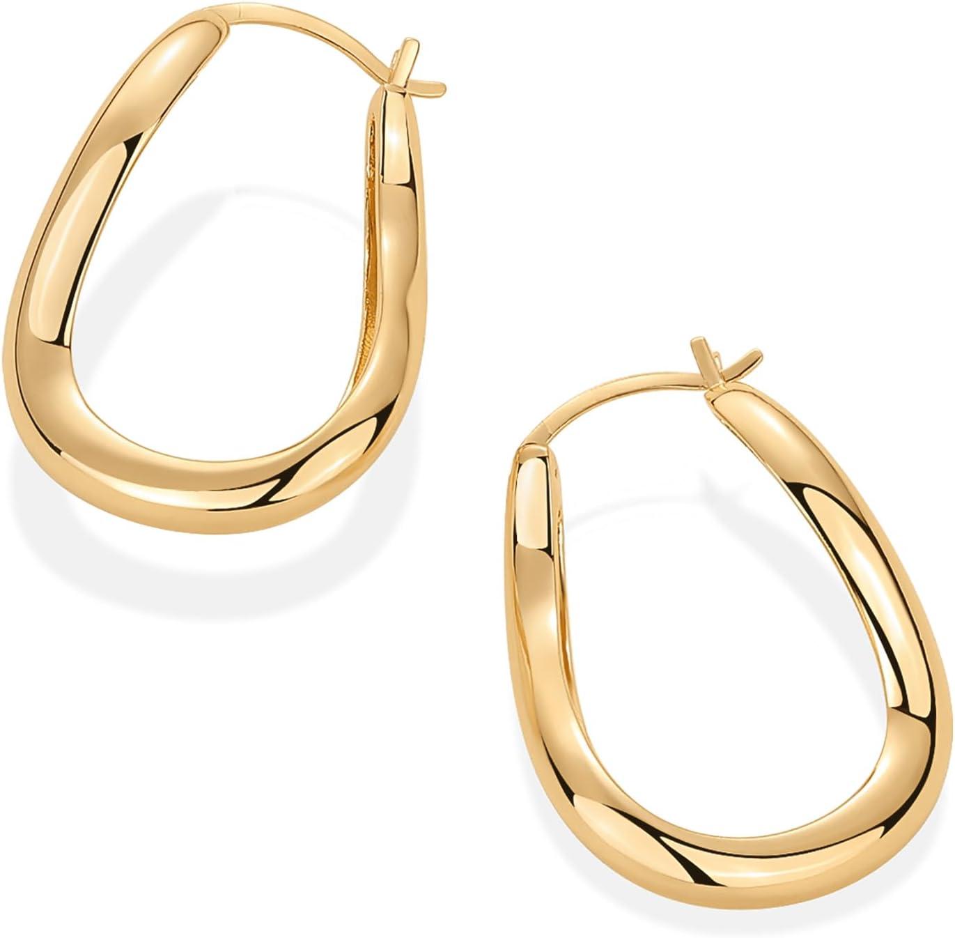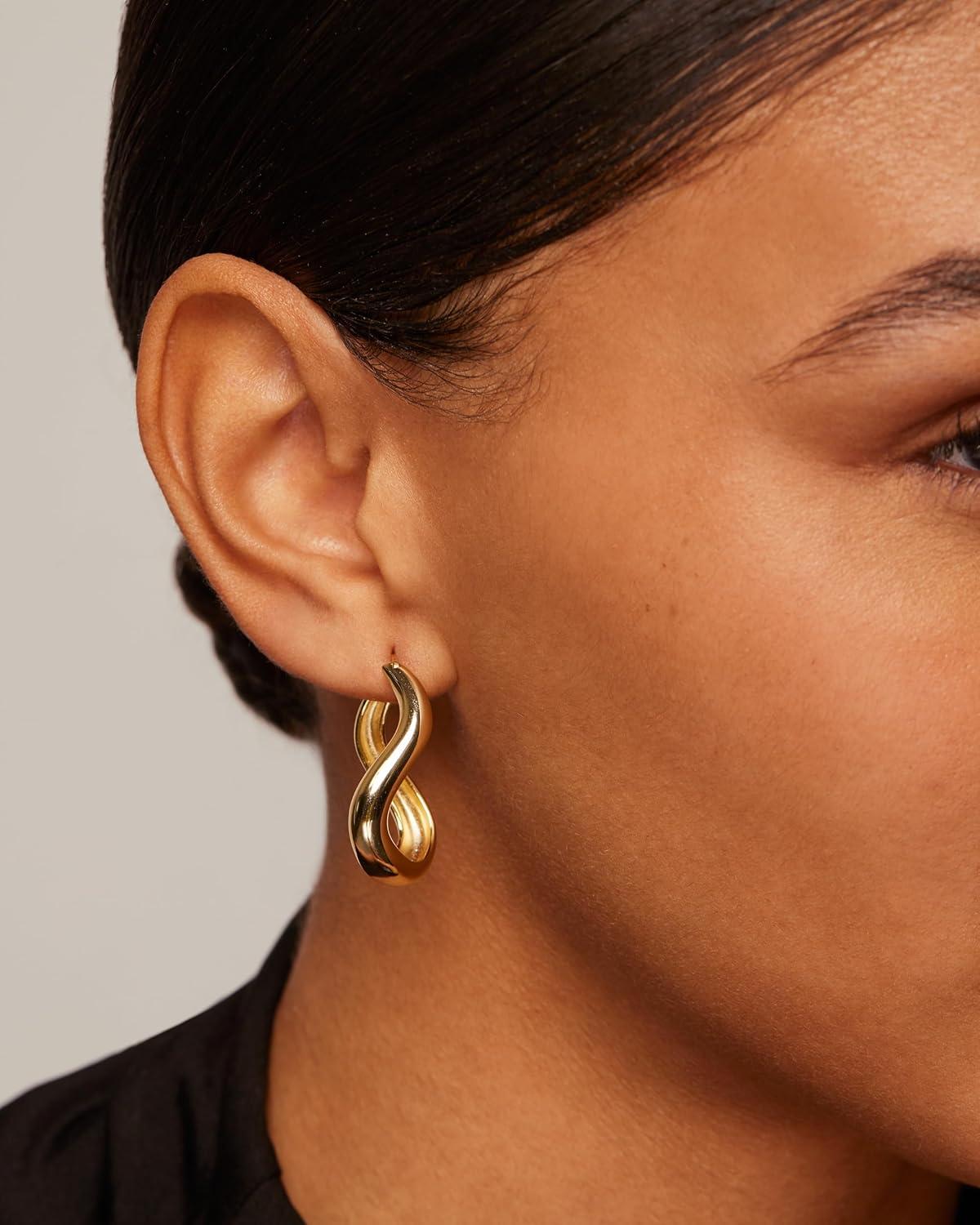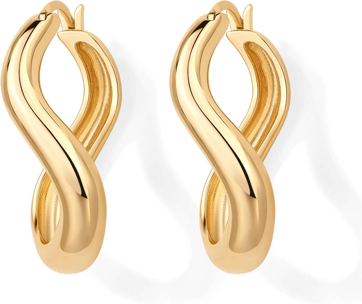 PAVOI 14K Gold Plated 925 Sterling Silver Posts Chunky Wavy Hoop Earrings for Women | Lightweight Statement Twisted Endless Wave Hoops Earrings(Yellow Gold)