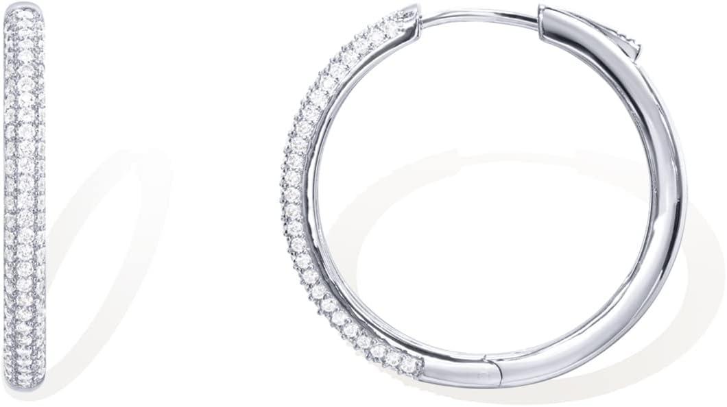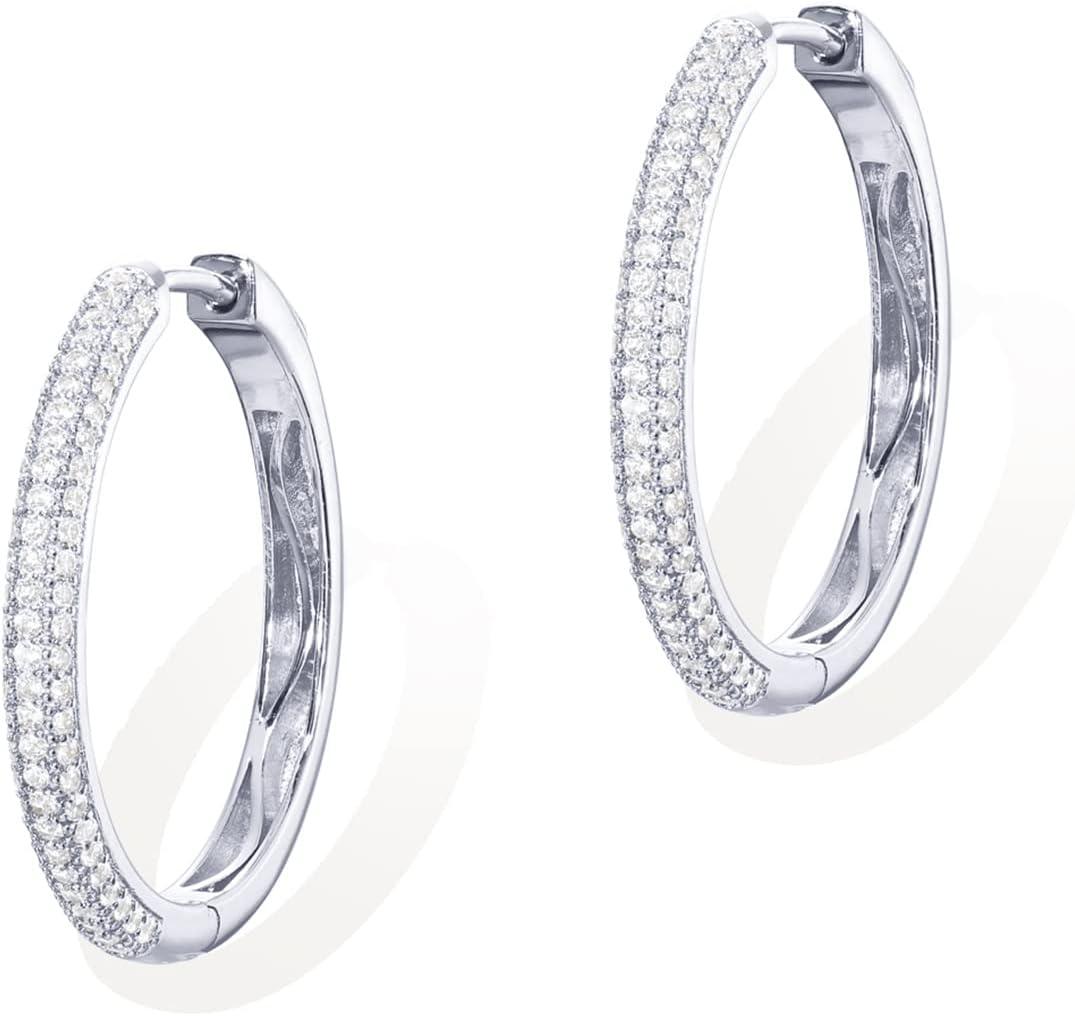 PAVOI 14K Gold Plated 925 Sterling Silver Posts Cubic Zirconia Hoop Earrings for Women | Halo CZ Gold Huggie Hoops(White Gold)