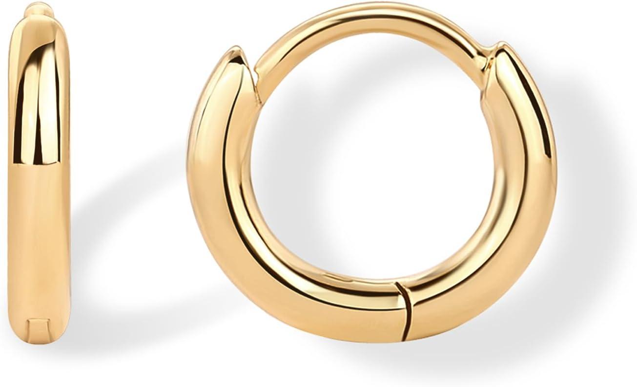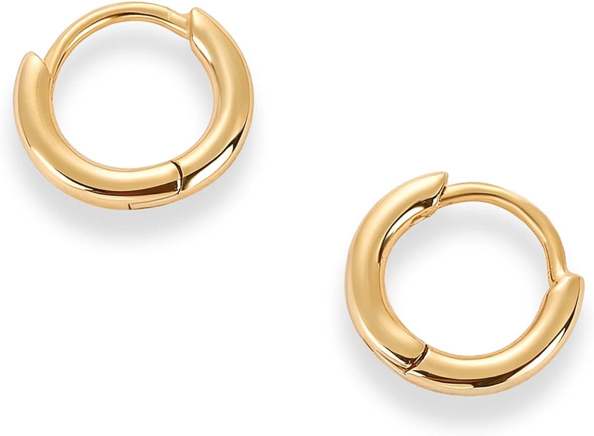 PAVOI 14K Gold Plated 925 Sterling Silver Posts Cubic Zirconia Mini Huggie Earrings for Women | Tiny Cartilage Helix Huggie Hoop Earrings(Plain)