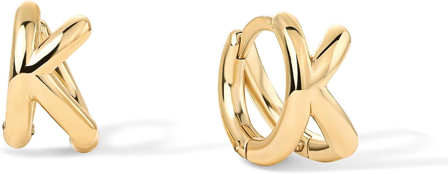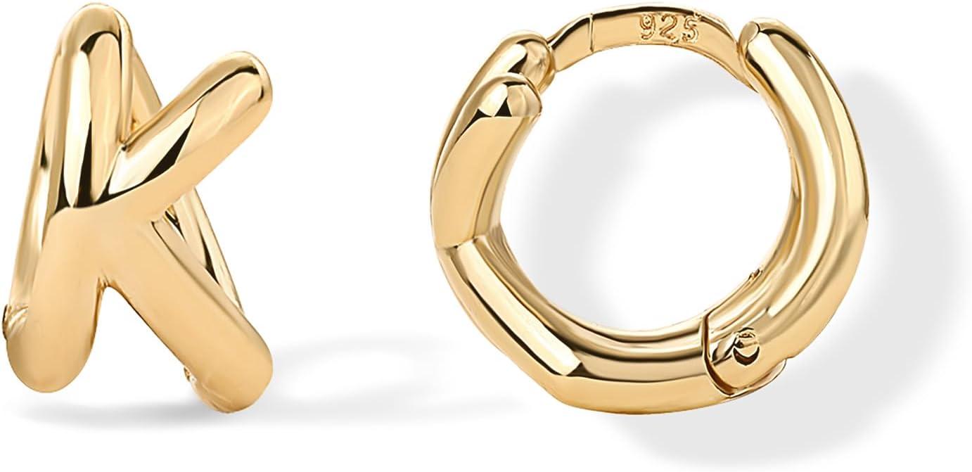 PAVOI 14K Gold Plated 925 Sterling Silver Posts Dainty Initial Huggie Earrings for Women – Gold Huggie Hoop Small Initial Jewelry – Trendy Alphabet Letter Earrings(- K)