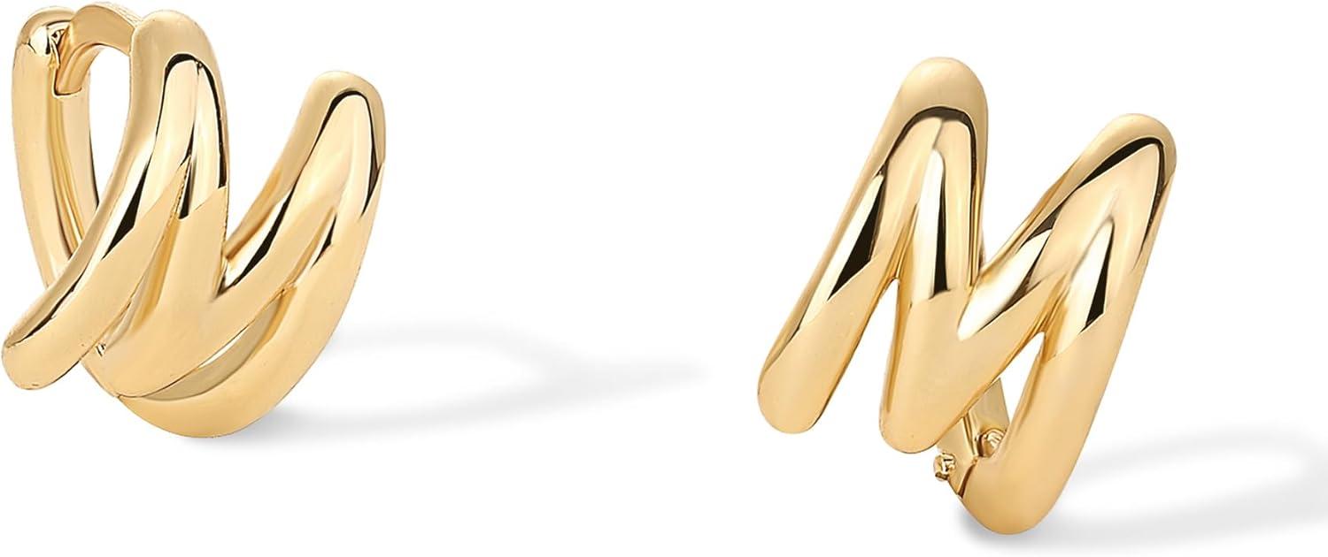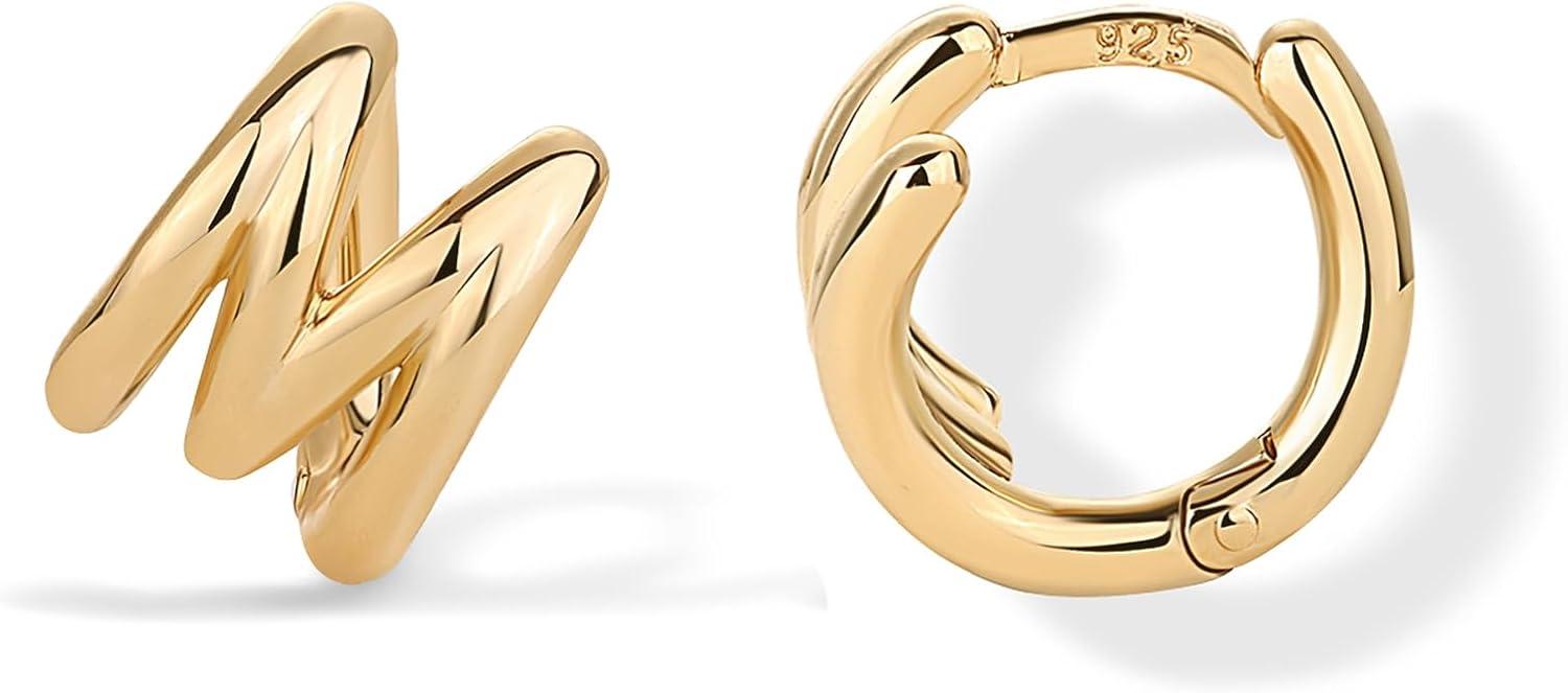 PAVOI 14K Gold Plated 925 Sterling Silver Posts Dainty Initial Huggie Earrings for Women – Gold Huggie Hoop Small Initial Jewelry – Trendy Alphabet Letter Earrings(- M)