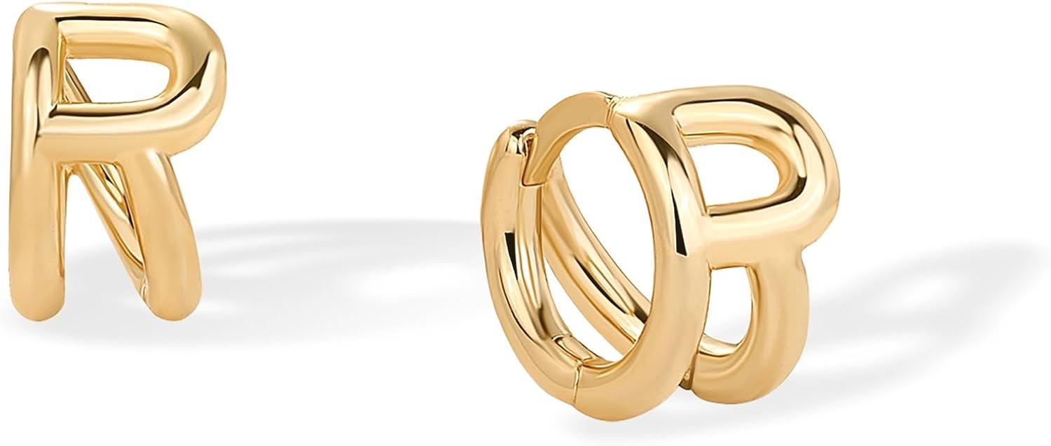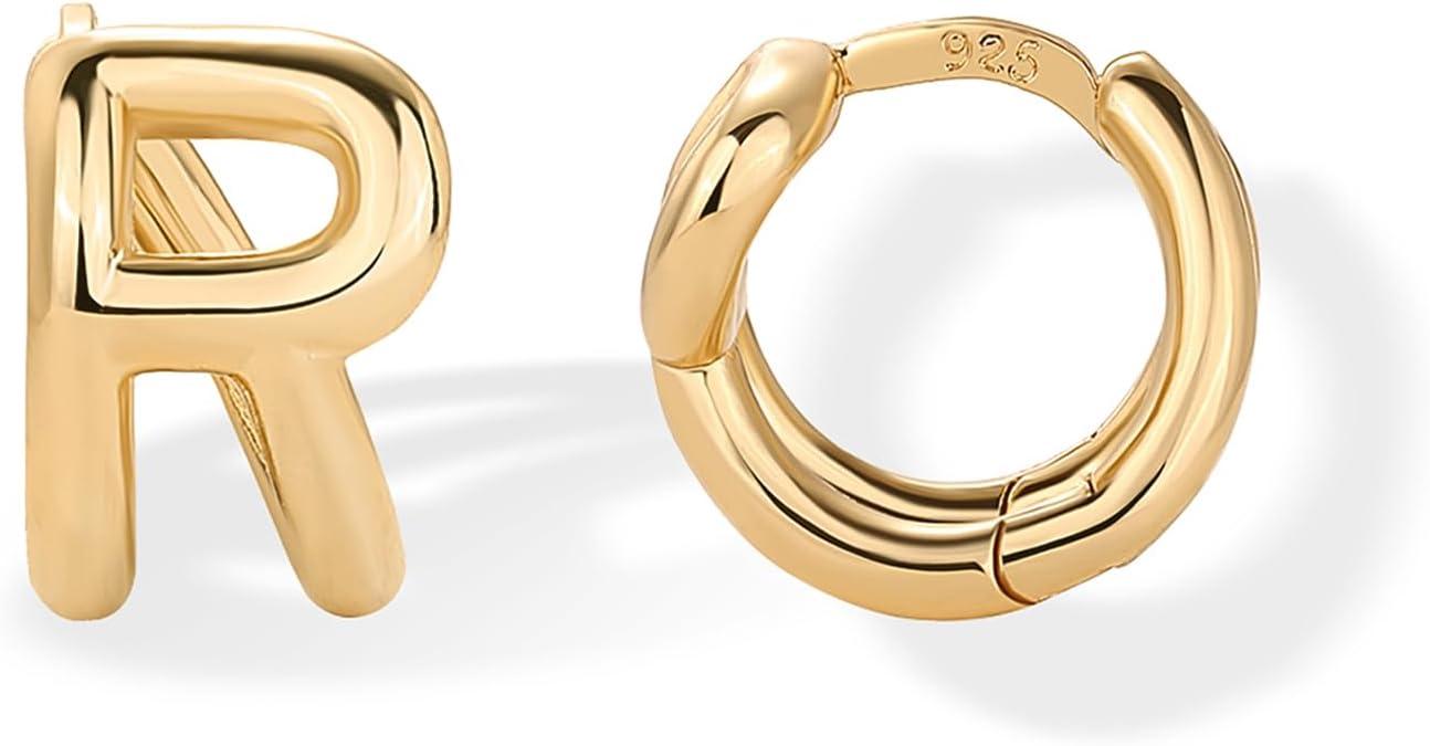 PAVOI 14K Gold Plated 925 Sterling Silver Posts Dainty Initial Huggie Earrings for Women – Gold Huggie Hoop Small Initial Jewelry – Trendy Alphabet Letter Earrings(- R)