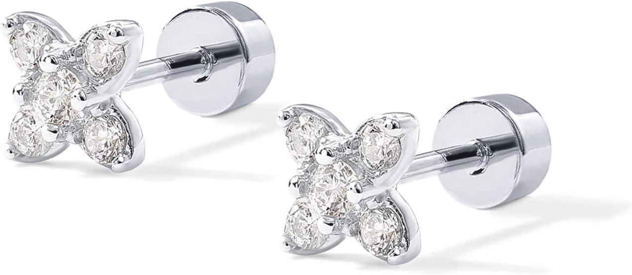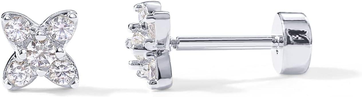 PAVOI 14K Gold Plated 925 Sterling Silver Posts Dainty Mini Multi-Shape Flat Back Stud Earring Pack for Women | Helix Cartilage Piercing Jewelry(Pavé)